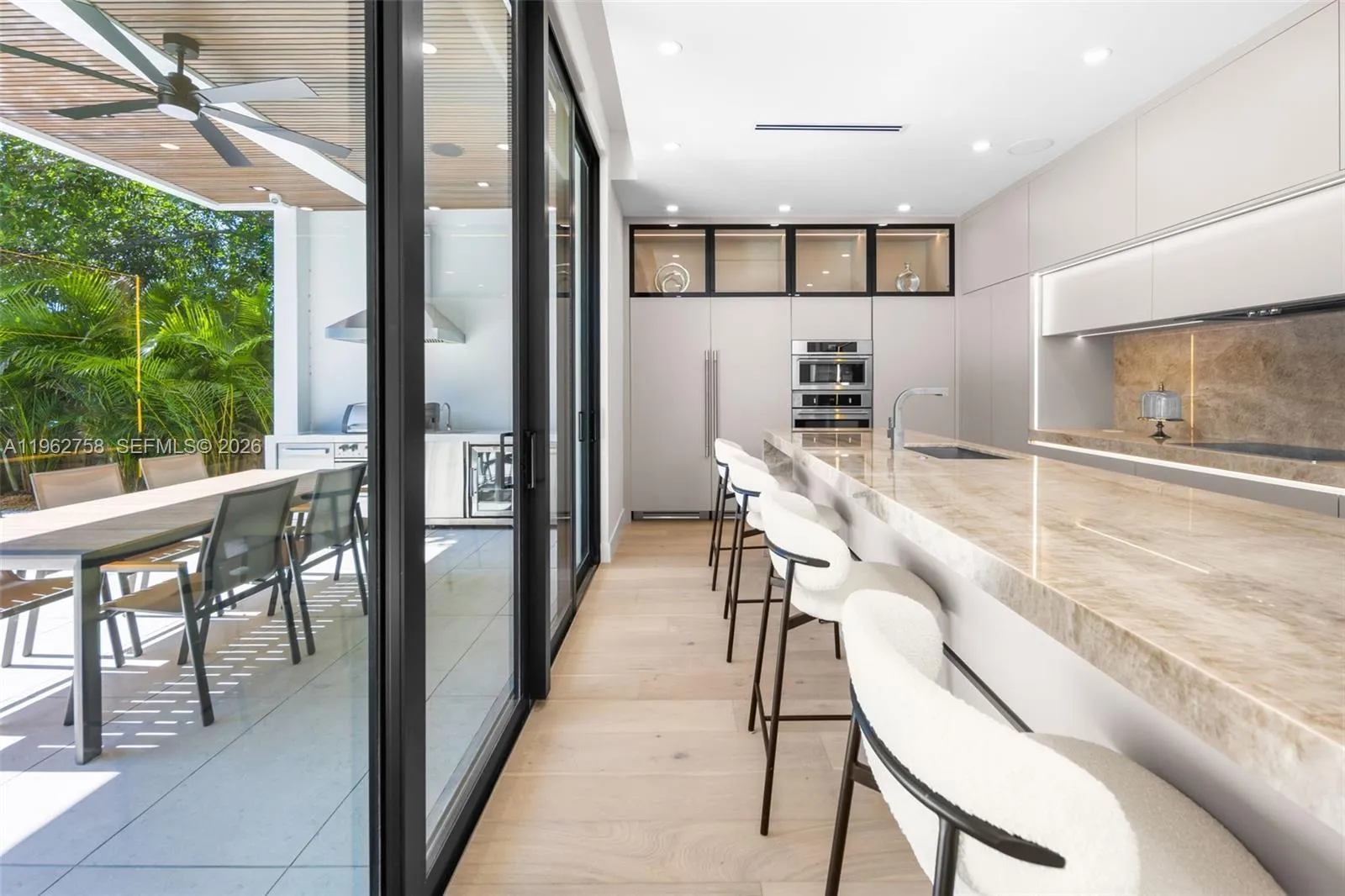 Refined architecture and elevated finishes define this newly completed Buena Vista residence. Oak floors, custom backlit LED accents, and expansive floor-to-ceiling glass create a sophisticated, light-filled atmosphere throughout. Generous balconies and an open layout enhance the seamless connection between indoor living and the surrounding outdoor spaces. The kitchen is equipped with Fulgor Milano and Fhiaba appliances, Taj Mahal quartzite countertops, and custom flush cabinetry, flowing directly into the outdoor entertaining area. This 5-bedroom, 6-bath home features oversized en-suite bedrooms with custom California Closets, and a two-car garage for added convenience. The backyard includes a saltwater pool, spa, and summer kitchen. A detached wellness suite / guest house offers its own kitchen, living area, sauna, cold plunge, and full bath. Minutes from the Design District, Downtown, and Miami Beach.