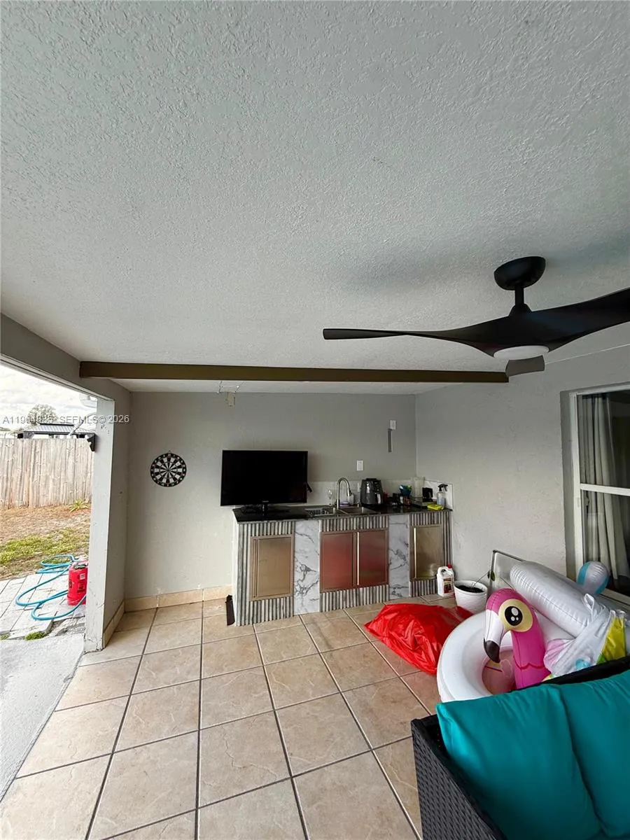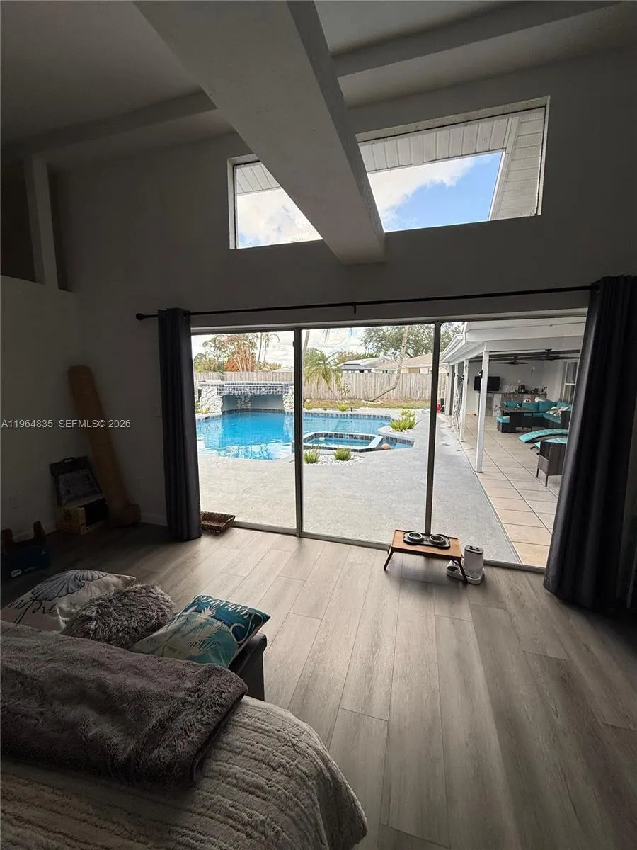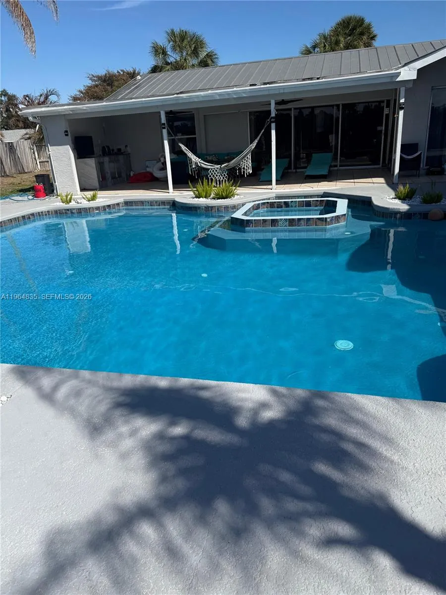 Step into your own private Florida oasis! Now offered with a recent price improvement, this beautifully maintained 3-bedroom, 2-bath, 2-car garage home is truly move-in ready and designed for living the ultimate Florida lifestyle.rnThe backyard is an entertainer’s dream — featuring a custom pool and spa, a stunning grotto, and a fully equipped tiki bar, all surrounded by expansive deck space perfect for hosting family and friends. The open-concept floor plan has been tastefully updated and flows seamlessly to the covered patio and pool area, creating the perfect indoor-outdoor living experience.rnSituated on an oversized corner lot, the property offers added privacy with green space behind the home plus a dedicated RV/boat parking pad — a rare find! The spacious primary suite includes a versatile additional room ideal for a home office, den, or flex space to fit your needs.rnAdditional highlights include a durable metal roof and a prime central location close to shopping, dining, and convenient access to the Florida Turnpike for easy commuting.rnSizes and measurements are approximate. Seller states main home is CBS construction and primary suite is frame. Buyer to verify all information.rnThis one checks all the boxes — take advantage of the new price improvement and schedule your private showing today!