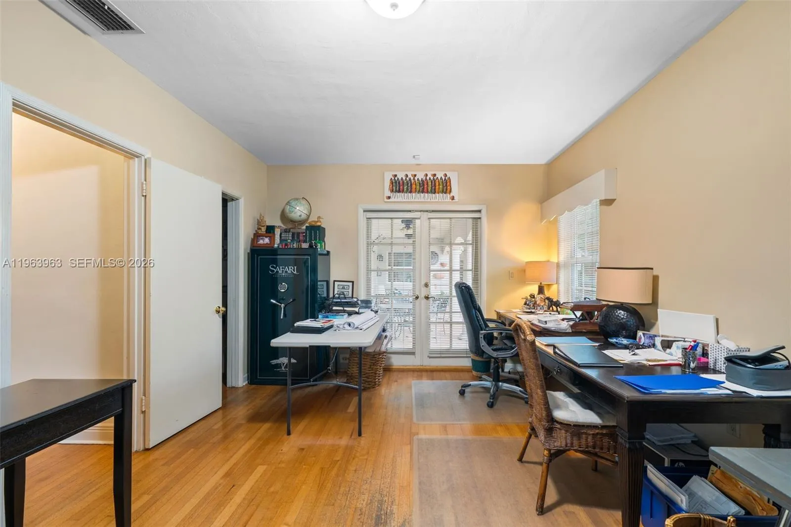 Beautifully maintained and thoughtfully designed, this inviting residence offers soaring double-height ceilings in the family room, creating a bright and open ambiance, while a fireplace anchors the living room with warmth and charm. Rich wood and marble floors run throughout, blending timeless elegance with everyday comfort. The home has 4 bedrooms, The first floor has 3 spacious bedrooms and 3 full bathrooms, while the private upstairs primary suite serves as a serene retreat complete with a sitting area, spa-inspired bath, and generous walk-in closets. Designed for effortless indoor-outdoor living, the brick patio and covered terrace overlook the pool, creating an ideal setting for entertaining. Speakers in the main living areas and outdoors enhance the experience. Additional highlights include double-pane windows, a generator, built-in garage workstation, exterior storage closet, and sprinkler system. A refined and functional home ready for its next chapter.