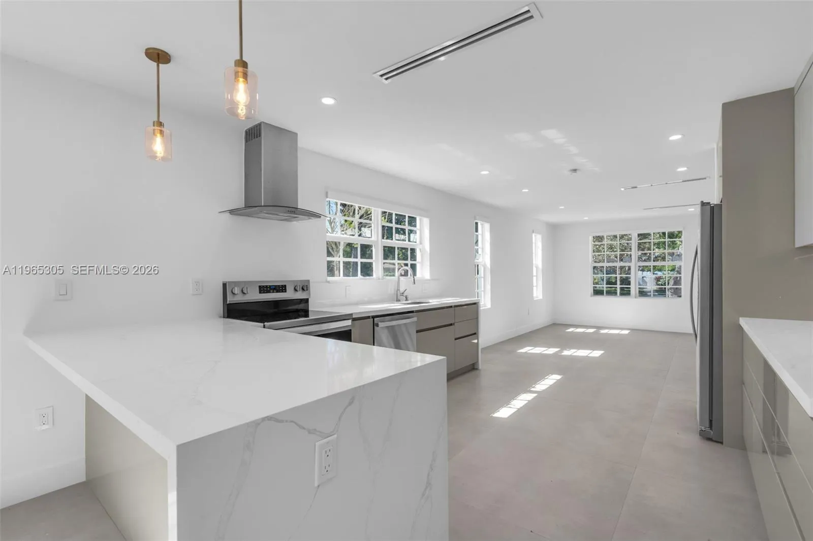 Step into immediate luxury in this stunning, newly constructed 3-bedroom, 2-bathroom home. The spacious layout is bathed in natural light. The chef’s kitchen features a chic combination of sleek white and warm wood cabinets, complete with brand new stainless steel appliances. Bathrooms are exquisitely finished with beautiful tile work, contemporary floating vanities, and LED mirrors for a spa-like experience. Bedrooms offer ample closet space, including a generous walk-in closet in the master suite. Enjoy the outdoors in your private, fenced backyard oasis, featuring a covered patio and lush green space for seamless indoor/outdoor living. The front of the property boasts modern concrete pavers ensuring a grand entrance and excellent curb appeal. This immaculate property is a rare find.