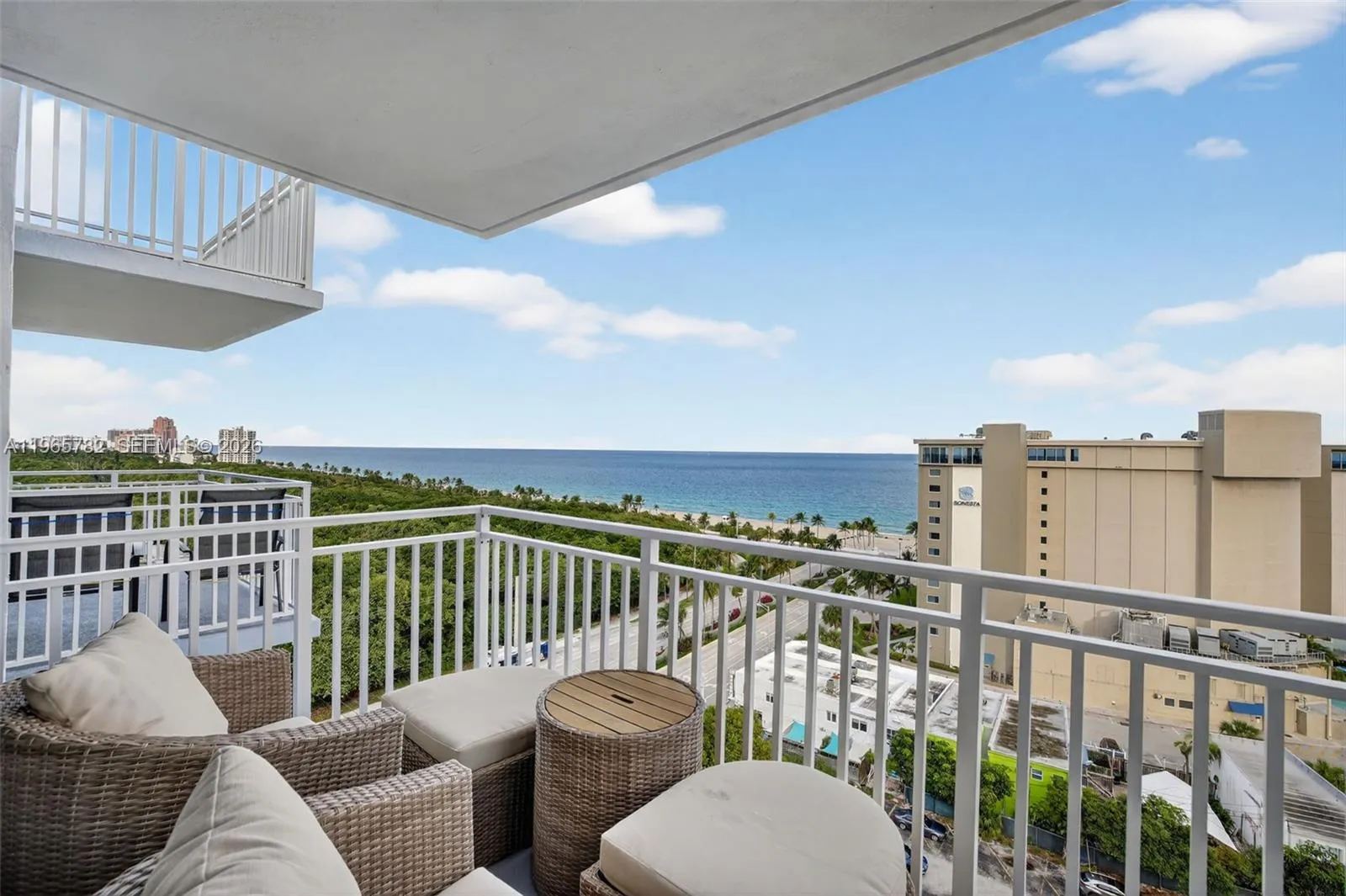 Mesmerizing views from this FULLY RENOVATED and FULLY FURNISHED corner unit on the 14th floor. Direct ocean views from every room. Rarely available south east facing corner unit with 270 degree views of Ocean, Intracoastal & downtown. Walk in closet. Washer & dryer in unit. New stainless steel appliances and filtered water fixture at sink. rnTwo to three min walk to beach, Bonnet House Preserve & Hugh Taylor Birch State Park. Short bike ride to LAS OLAS. Walk to over a dozen restaurants, bars and coffee shops, Publix & Galleria Mall. You will be awestruck by the sunrise over the ocean and the night lights of downtown Fort Lauderdale. Watch the cruise ships leave Port Everglades from your bed. Very secure building with FOB access and 24 hour live security/front desk attendant. One parking space.