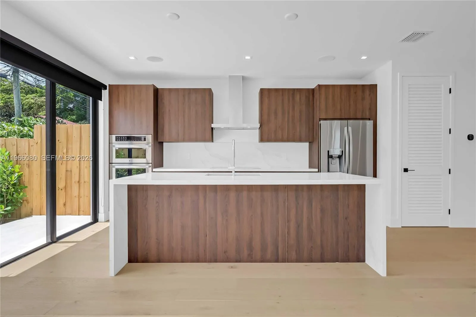 2023 Construction featuring a modern design with a pool, 3 bedroom/3.5 bathrooms, 2029 living sq ft & 2,382 total sq ft. One car garage & 1 outdoor parking space in driveway. Aluminum electric gate for privacy. Open floor plan concept, sleek kitchen featuring italian cabinets with quartz countertops & large island with a waterfall. Stainless steel appliances including electric cooktop, wall oven/microwave combo, dishwasher. Hard wood floors throughout. Master bathroom features double vanity, free-standing tub & large shower. Solar shades throughout. Custom closets installed. Exterior outdoor cameras and security panels all in place. Ring doorbell installed. Close proximity to Coco Walk, Merrick Park shops. Amazing location.