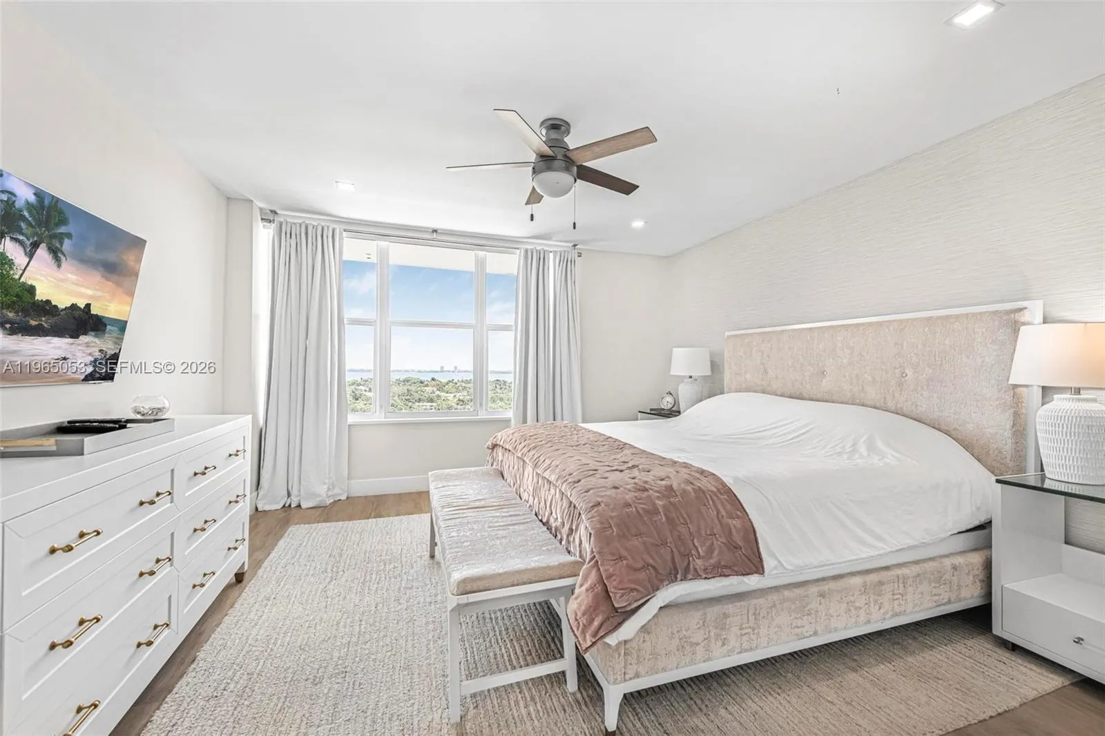 Experience coastal luxury in this stunning 2-bedroom, 2-bathroom corner condo (1,352 SqFt) at Carriage Club South, fully furnished and curated by award-winning DLT Interiors. Sunlit rooms with floor-to-ceiling hurricane impact windows showcase breathtaking West water and skyline views – perfect for sunset evenings. The open-concept interior features a custom chef’s kitchen with central island, marble-finished bathrooms, and spacious walk-in closets, and in unit laundry. Enjoy premier amenities: beachfront pool, 24-hour lobby service, fitness center, boardwalk & beach access with complimentary chairs and umbrellas.