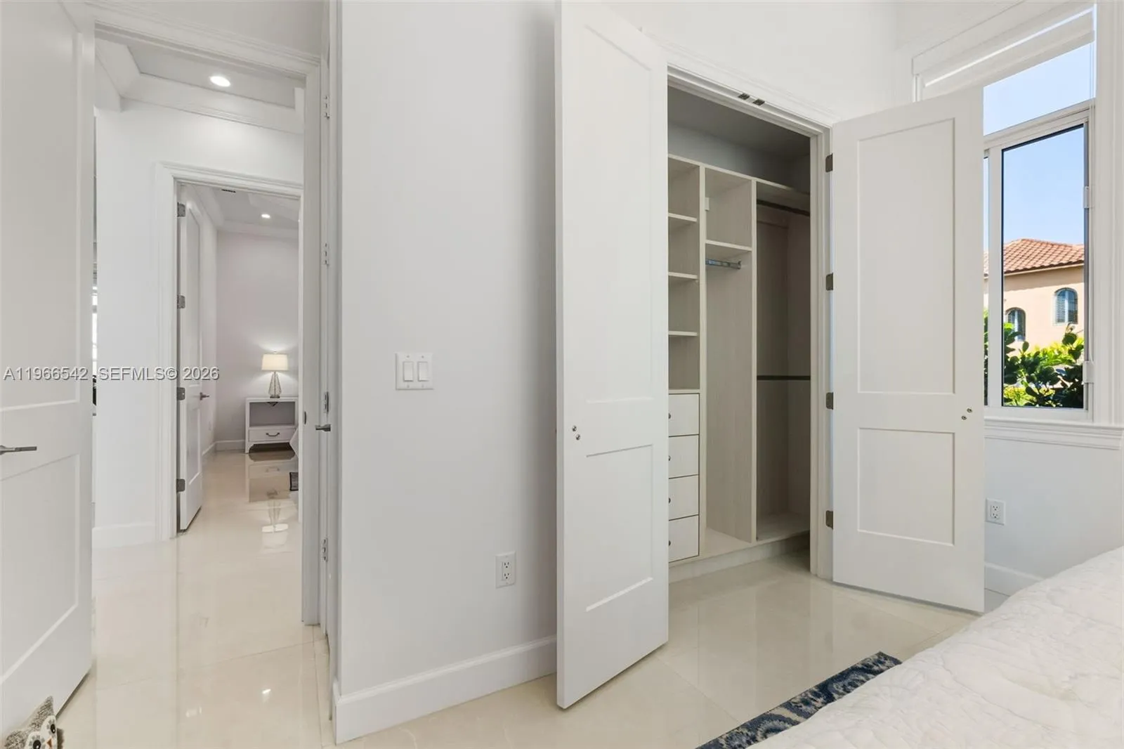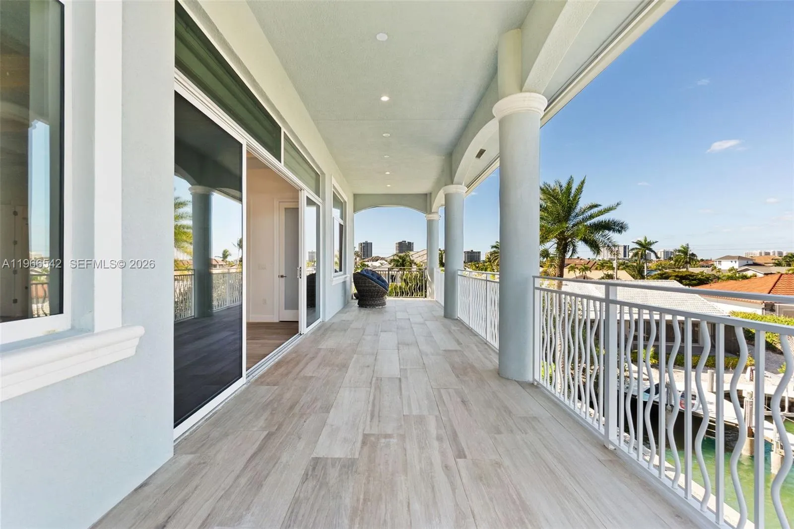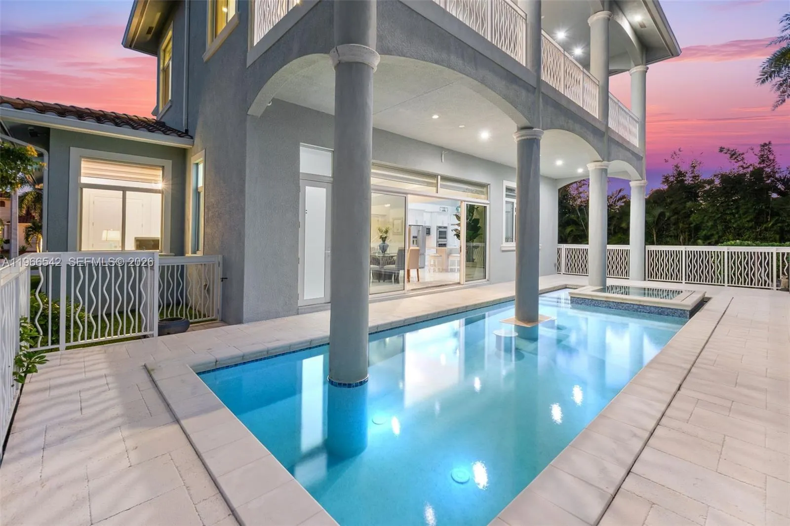 Luxurious fully furnished Marco Island waterfront residence, professionally decorated and move-in ready. This 4-bedroom, 4-bath home blends refined design with effortless coastal living, showcasing tranquil channel views and water access with potential for dock addition.rnrnSoaring 24-foot ceilings, porcelain flooring throughout the home and balconies, wood crown moldings, and custom coffered ceilings create a grand yet inviting interior. The open-concept living and dining areas are filled with natural light and designed for entertaining. The chef’s kitchen features KitchenAid Architect Series appliances and Taj Mahal Brazilian stone countertops, while all bathrooms and the laundry room are finished in white quartz. Custom built-in closets, impact windows and doors, barrel tile roof, exterior camera system, elevator, and dual AC units add comfort and peace of mind.rnrnThe entire second floor is dedicated to the private primary suite with sitting area, spa-style bath, and oversized closet, while a first-floor junior ensuite is ideal for guests or multigenerational living.rnrnOutdoors, enjoy a resort-style setting with a heated Pentair pool and spa on an expansive deck overlooking the water, plus convenient pool bath access. A paver driveway and two-car garage complete the property.rnrnExperience the Marco Island lifestyle with boating, sunsets, and year-round entertaining in a home designed for luxury and relaxation.
