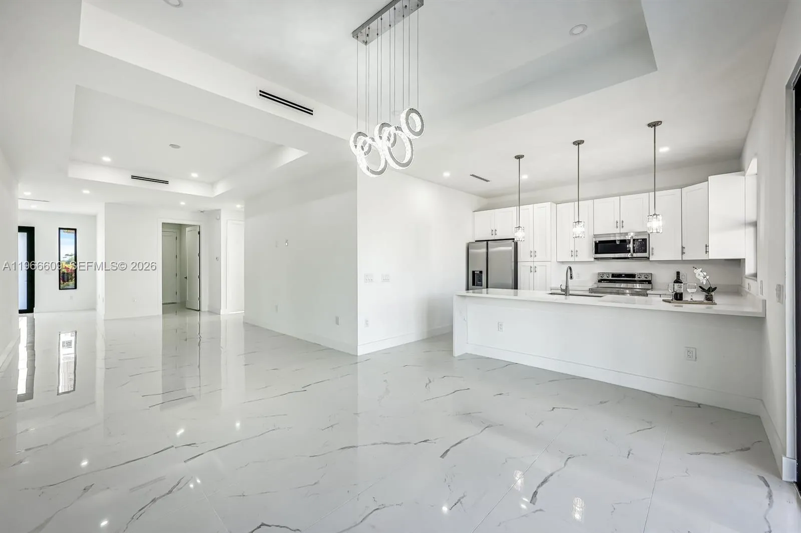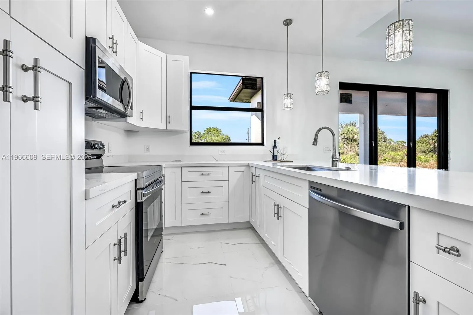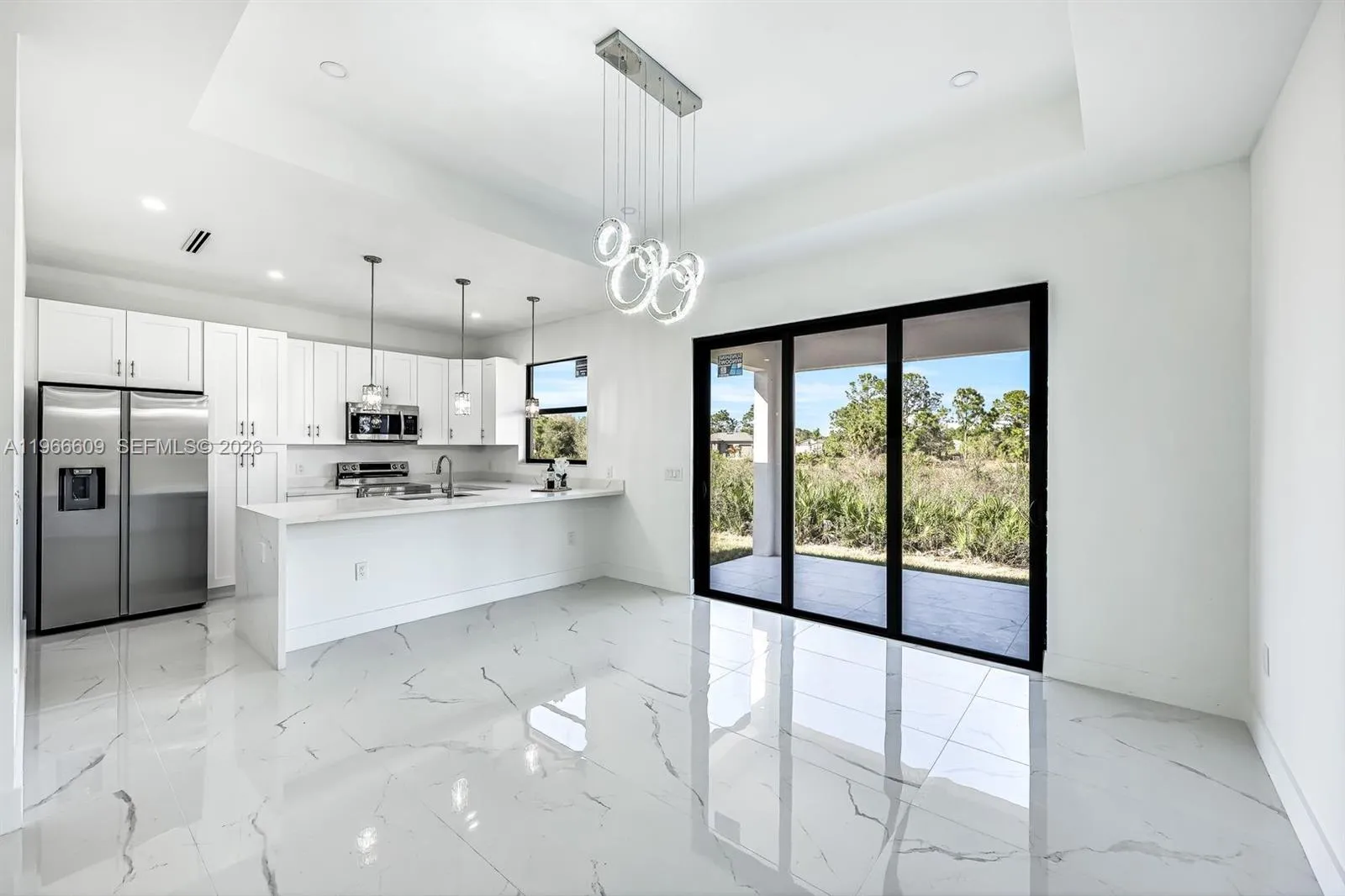 Brand-new construction in Lehigh Acres! This modern 3-bedroom + den, 2-bath home offers an open-concept layout with high ceilings, tile flooring throughout, and plenty of natural light. The stylish kitchen features quartz countertops, stainless steel appliances, soft-close cabinetry, and a large island—perfect for entertaining. The spacious primary suite includes a walk-in closet and spa-like bath with dual sinks and a walk-in shower. In addition, a 2-car garage, impact doors and windows. Situated on a ¼-acre lot with no HOA. Conveniently located near shopping, schools, and major roads. Move-in ready—schedule your showing today!