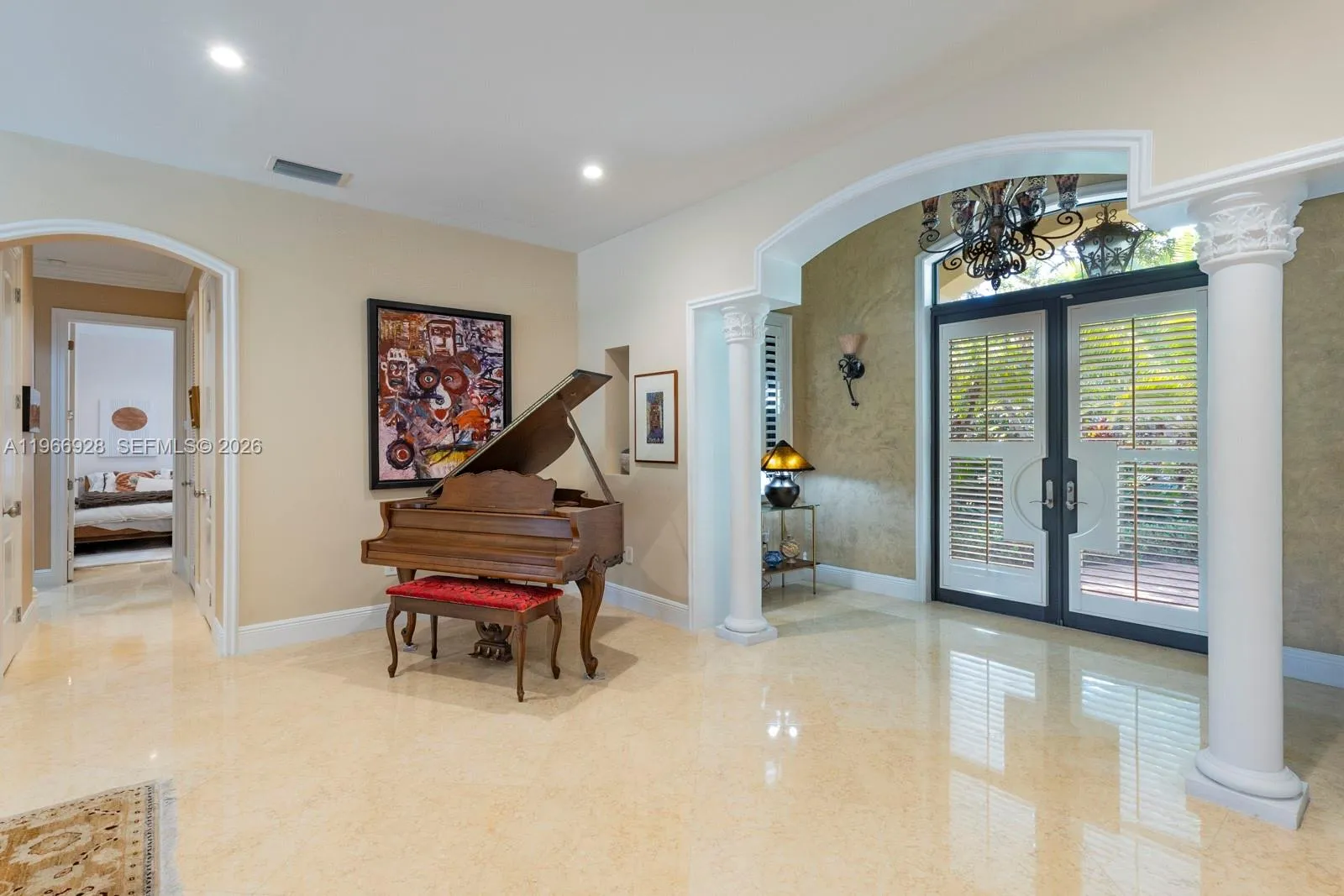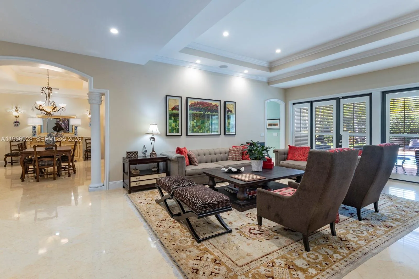 Fabulous 2007-built 5/5.5 family home on quiet great street in north Pinecrest. High ceilings, impact glass windows and French doors, Egyptian marble floors, generator, gas cooktop, gas dryer, gas water heater, and a working fireplace. Ideal split floor plan layout includes a fabulous and large open kitchen/ family room and breakfast room, 2-story primary suite wing, full cabana bath, 2-car garage, interior utility room, big walk-in closets, gorgeous built-in wet bar, and more! Tranquil, private, and easy-to-maintain pool-patio-yard area includes Chicago brick, gazebo and turf. All the best Pinecrest schools and central location to all the Village has to offer.