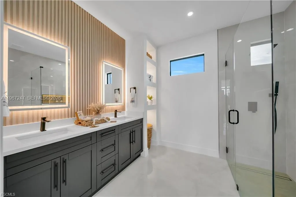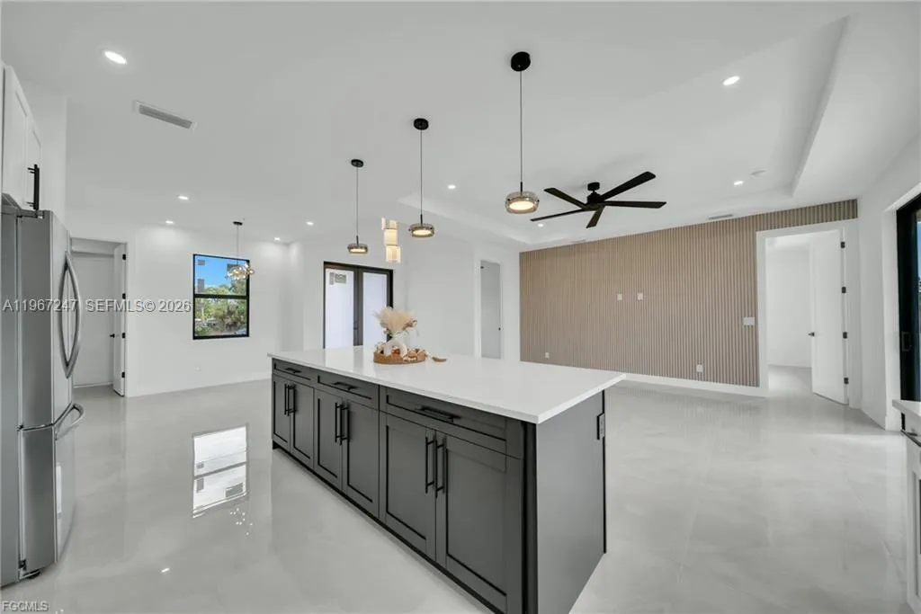BRAND-NEW HOME • MODERN FINISHES • MOVE-IN READYrnThis new construction 4-bedroom, 3-bath home offers 2,391 total sq ft (1,778 under A/C), a 2-car garage, and a functional layout designed for comfortable everyday living. High ceilings, porcelain tile throughout, and a bright open-concept living area create a clean, modern feel.rnrnThe kitchen features a large quartz island, full backsplash, under-cabinet lighting, new appliances, and a spacious walk-in pantry. The primary suite includes a spa-style bath, while a second suite is ideal for guests or extended family. The fourth bedroom works perfectly as a home office or flex space.rnrnEnjoy Florida living with 8-ft sliding doors to an extended lanai, epoxy-coated garage floors, impact windows and doors, paver driveway, and a whole-home water filtration system. Easy to show.
