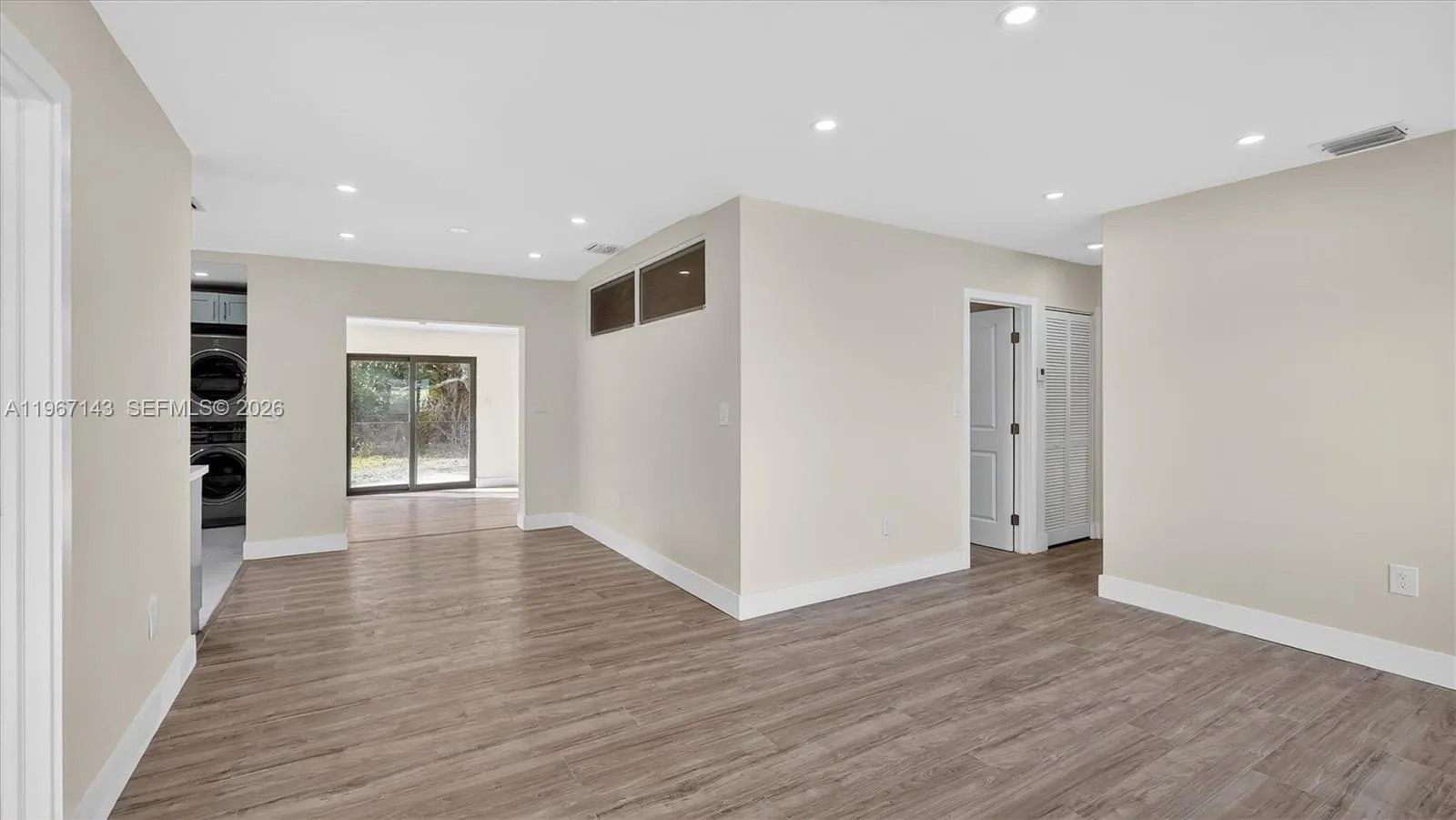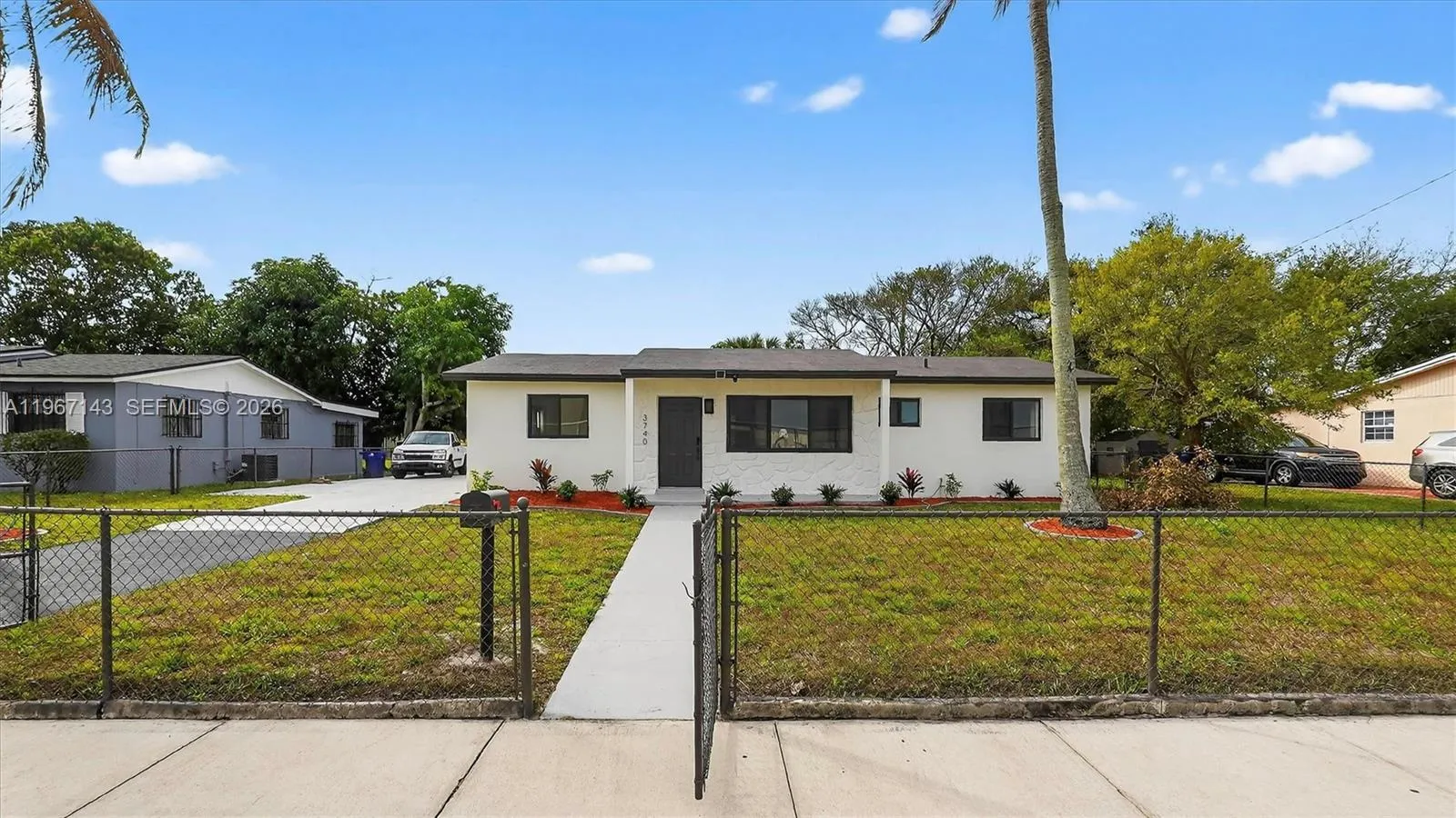 Welcome to 3740 NW 188th St, Miami—an updated, light-filled home with clean modern finishes and a layout made for everyday living and entertaining. Step inside to an airy open concept highlighted by smooth ceilings, recessed lighting, fresh neutral paint, and wide-plank wood-look flooring that flows through the main living areas. Black-framed windows and sliding glass doors bring in great natural light and connect you to the backyard.rnrnThe showstopper kitchen features sleek gray shaker cabinetry, stainless steel appliances, a large pantry wall, and striking quartz countertops with a matching full-height backsplash. The oversized waterfall island with modern fluted detailing anchors the space—perfect for prep, casual meals, or hosting. A convenient built-in laundry area keeps everything streamlined.rnrnBoth baths are designed with a spa vibe: large-format tile, contemporary vanities, stylish mirrors/lighting, and a walk-in wet-room style shower with rainfall head plus handheld sprayer.rnrnOutside, enjoy an expansive concrete patio/parking area and a detached storage building—ideal for tools, bikes, or a home workshop. Conveniently located in Northwest Miami-Dade near shopping, dining, and major commuter routes. Move-in ready and easy to love—schedule your showing
