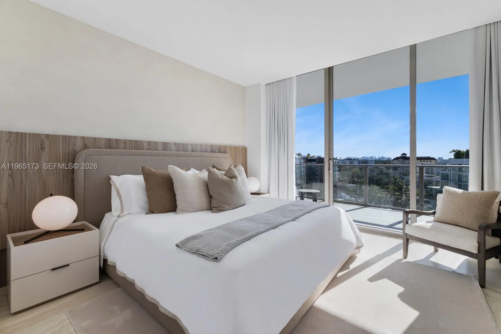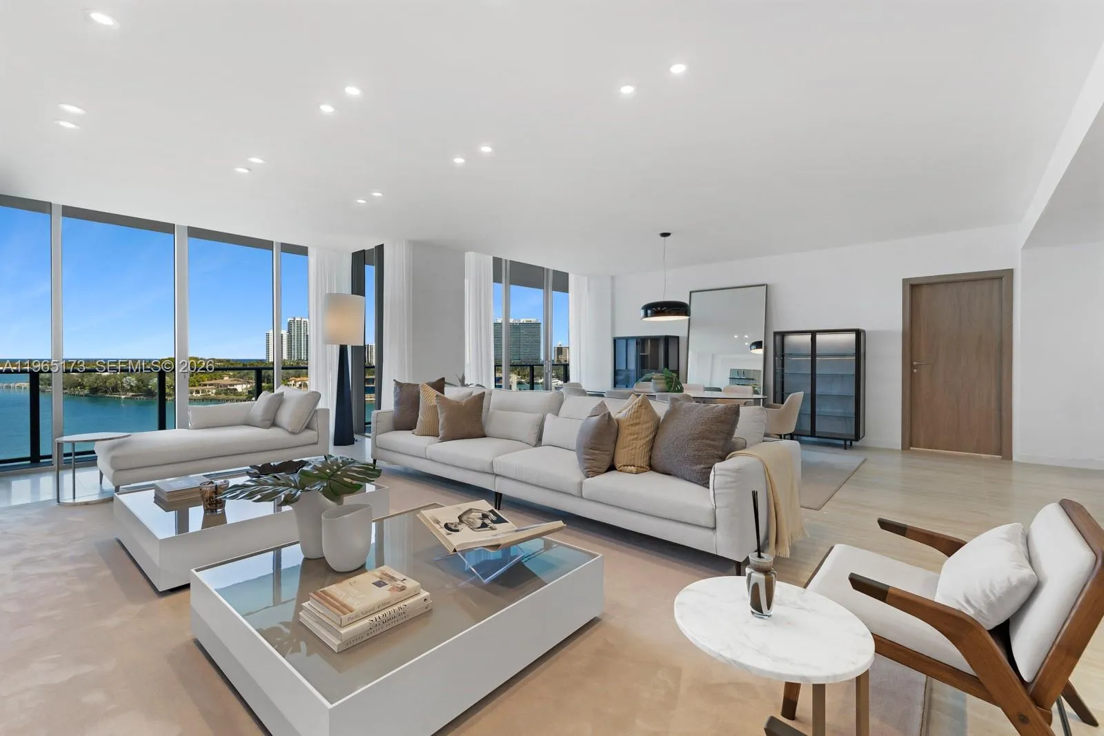 Step Inside With Me! One of only four premier penthouses at Onda, Bay Harbor Islands’ newest luxury boutique residential experience. Surrounded by aqua waters, this never-lived-in bayfront stunner has travertine flooring throughout and is offered furnished. Beyond the private foyer, the grand hosting salon reveals itself through walls of glass where a floating, backlit media wall with custom shelving and lacquered cabinetry defines the space. The Snaidero kitchen showcases an expansive eat-in island with marble counters and premium Miele appliances, extending into a sunlit dining room with water views. The primary suite displays an integrated entertainment wall, spa-inspired marble bath with dual vanities, and two generously proportioned closets. Penthouse 3 features three additional appointed guest suites, each with custom drapery and private access to one of the two expansive terraces. Standout features include a private office and sleek media den thoughtfully designed for comfort and entertainment. Designed by award-winning Arquitectonica and landscaped by Enzo Enea, Onda offers outstanding amenities: a grand pool, Technogym fitness center, wellness spa, EV charging station — plus 2 parking spaces, storage, and 24-hour valet. All moments from Bal Harbour Shops, Four Seasons Surf Club, and the beach. To be sold with 60′ boat slip for an additional $500,000.