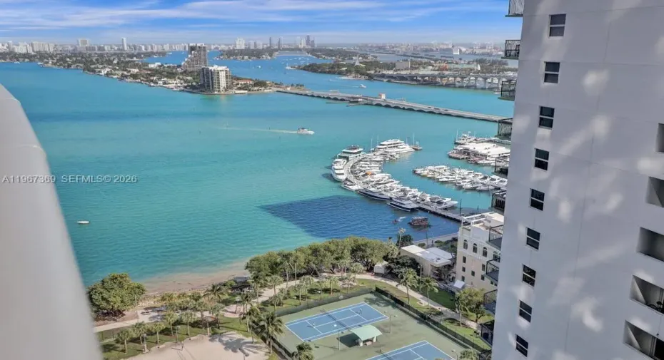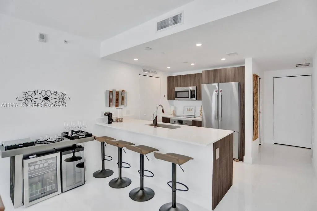 Luxury 1bed plus den apartment at Aria on the Bay. FULLY FURNISHED UNIT features a master bedroom with an attached bathroom, as well as a den that can be used as a second bedroom, office or study area with a full bath. The open plan living and dining area is flooded with natural light and offers stunning views of the surrounding city and bay. The kitchen is equipped with high-end appliances, stainless steel refrigerator, oven, and dishwasher, and sleek countertops. Residents of Aria on the Bay also have access to a range of amenities including a fitness center, swimming pool and spa. Great location, easy access to transportation links and 2 blocks from Publix. TURN KEY, READY TO MOVE IN