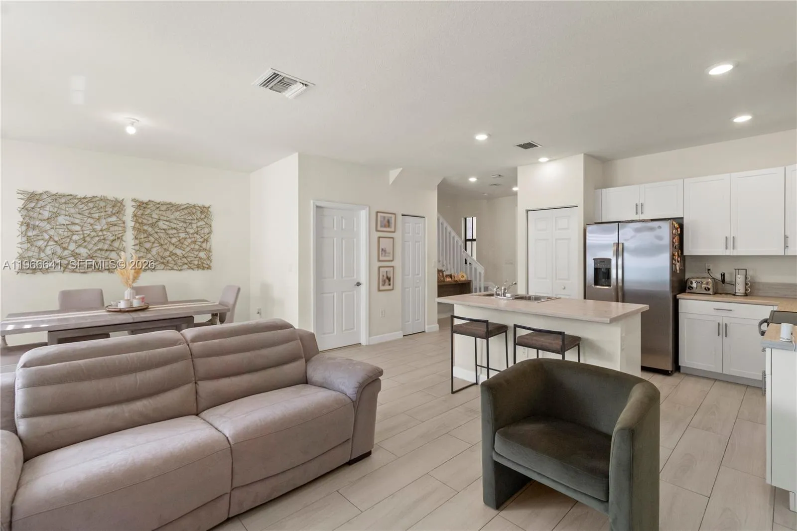 Not all townhomes in Aquabella are created equal — and this one proves it. Featuring one of the largest backyards in the community, this property offers a rare and highly desirable outdoor space designed for entertaining, complete with artificial turf, an extended concrete slab layout, and gorgeous ambient lighting.rnInside, tile flooring flows throughout for a seamless, modern feel, and the garage is upgraded with sleek epoxy floors. Visitor parking is conveniently located directly in front of the home, adding everyday practicality for you and your guests.rnResidents enjoy resort-style amenities including sparkling pools, jacuzzi, a modern clubhouse, and a state-of-the-art fitness center — all within a beautifully maintained gated community.rnThis is the one with the space, the upgrades, and the lifestyle buyers are looking for.