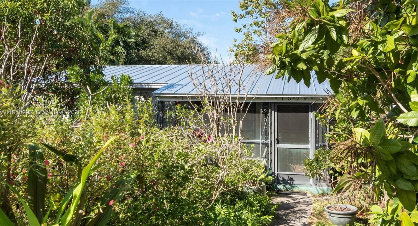 Ideally located in Fort Lauderdale, just steps from Wilton Manors main street. Single family house, 2 bedroom and 1 full bathroom with brand new metal roof (2025) thoughtfully designed with sustainability in mind. The front and back gardens feature native plants and mature trees that conserve water while supporting the local natural environment. A charming covered front porch offers the perfect spot to relax and enjoy peaceful views of the quiet street. The expansive backyard is open, inviting, and immersed in nature, providing ample space to create your own outdoor retreat—whether that includes a tranquil pond, elegant fountain, or a future pool.