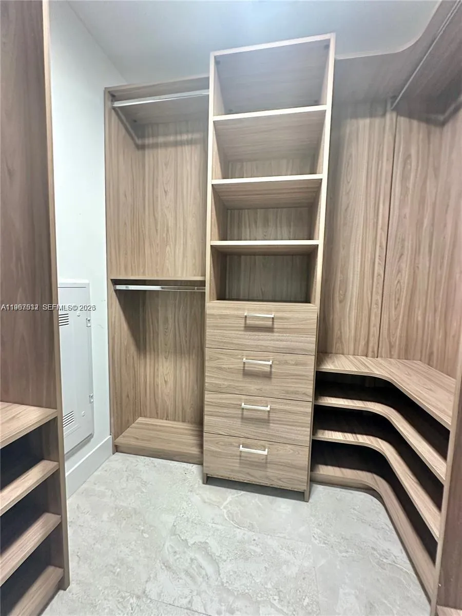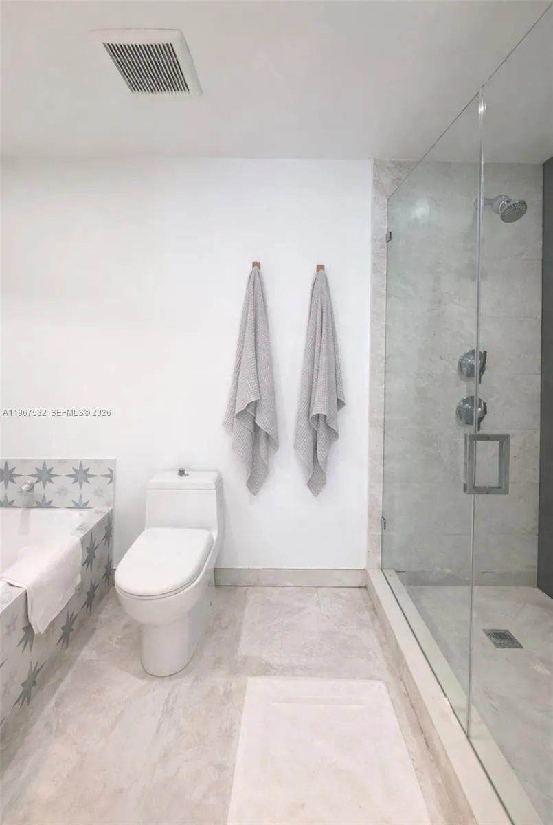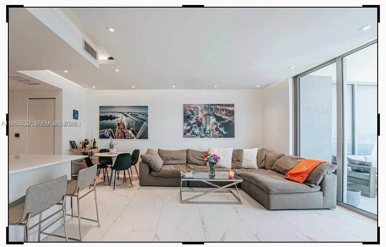 Centrally located in Miami’s Arts & Entertainment District, Residence 4304 offers a spacious 1-bedroom, 1.5-bath layout with southern exposure and open views of Biscayne Bay and the Downtown Miami skyline. This well-appointed unit features tile flooring throughout the interior and balcony, custom drop ceiling with integrated ambient lighting, motorized blinds, quartz countertops, and Bosch stainless steel appliances. The primary bathroom includes an upgraded shower and soaking tub.