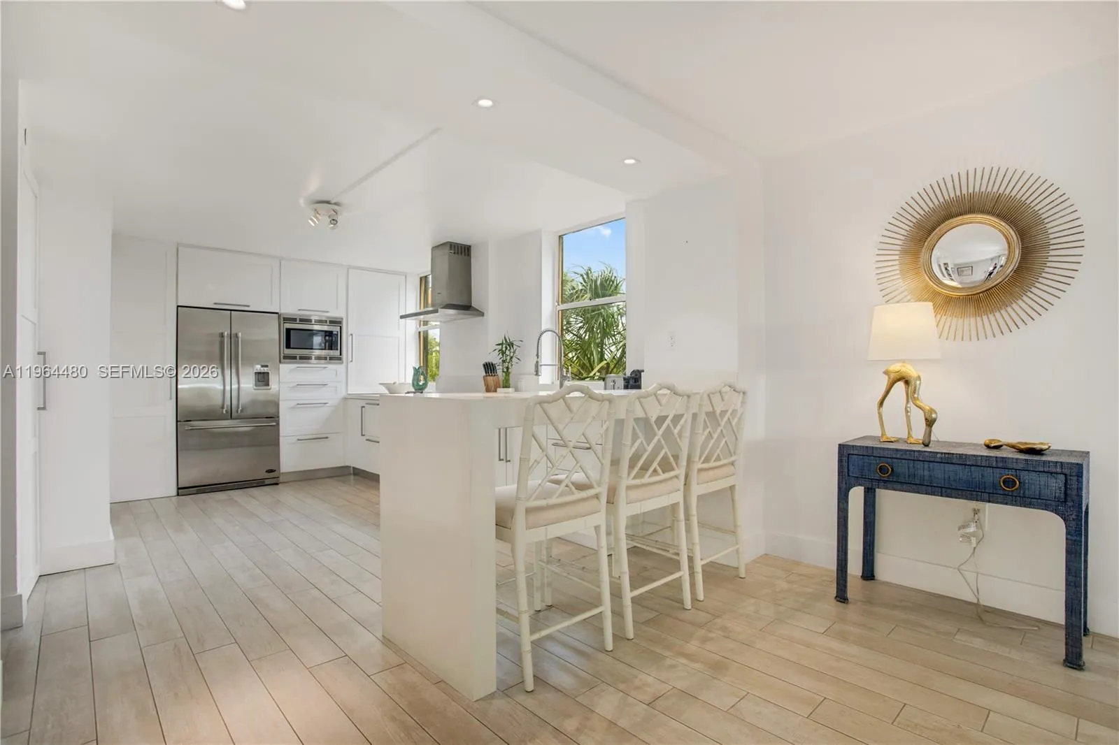 This is a true hidden gem, nestled in a boutique complex overlooking Biscayne Bay. This private oasis features a private elevator that opens up right into your living room. Situated in the heart of Coconut Grove, enjoy an expansive wrap around balcony with stunning water views. Completely furnished and fully renovated open floor plan condo boasts charming Coconut Grove style furnishings, wooden floors, stainless steel appliances, washer/dryer in the unit, breakfast bar, and a hammock to enjoy the serene sunrises. This unit comes with 2 reserved parking spots, gated community, and heated pool over looking the Bay.