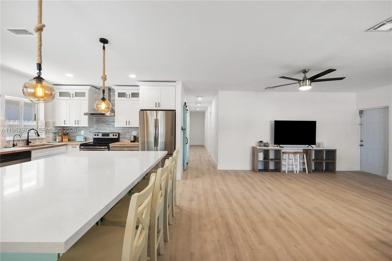 This single-family residence offers three bedrooms and two full bathrooms with a functional split-bedroom layout designed for everyday living. The home features a newly constructed in-ground pool and a custom-built pergola, creating a defined outdoor entertaining area with dedicated space for seating and dining.rnLocated just minutes from the beach and directly off Hollywood Boulevard, the property provides immediate access to restaurants, cafés, retail shopping, and daily conveniences without the need for extended travel time.rnThe interior includes a fully updated kitchen equipped with brand-new stainless steel appliances, modern cabinetry, and an open-concept layout that connects directly to the primary living and dining areas.rnrnrnrnMajor system upgrades include a new roof and a new air conditioning system, offering reduced maintenance concerns and improved energy efficiency. The home balances updated finishes with practical design, making it suitable for both primary residence and seasonal ownership.