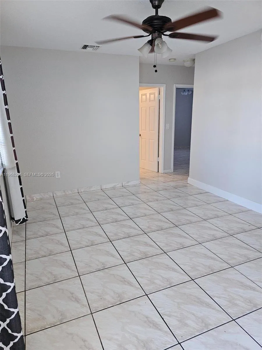 Well-maintained 2-bedroom, 1-bath single-family home in Homestead. Recently painted interior and exterior. Features tile flooring throughout, a spacious family room, and good natural light: A/C 2 years old, ceiling fans, and blinds. The kitchen is equipped with a dishwasher; a washer and dryer are also included.rnCarport and additional parking. Fully fenced backyard with exterior security lighting (front and rear).rnConveniently located near Krome Ave, Florida Turnpike, and US-1. Close to downtown Homestead, Baptist Hospital, Homestead Air Reserve Base, shopping centers, restaurants, schools, theaters, and public transportation.rnNo HOA. Easy to show with rapid approval.