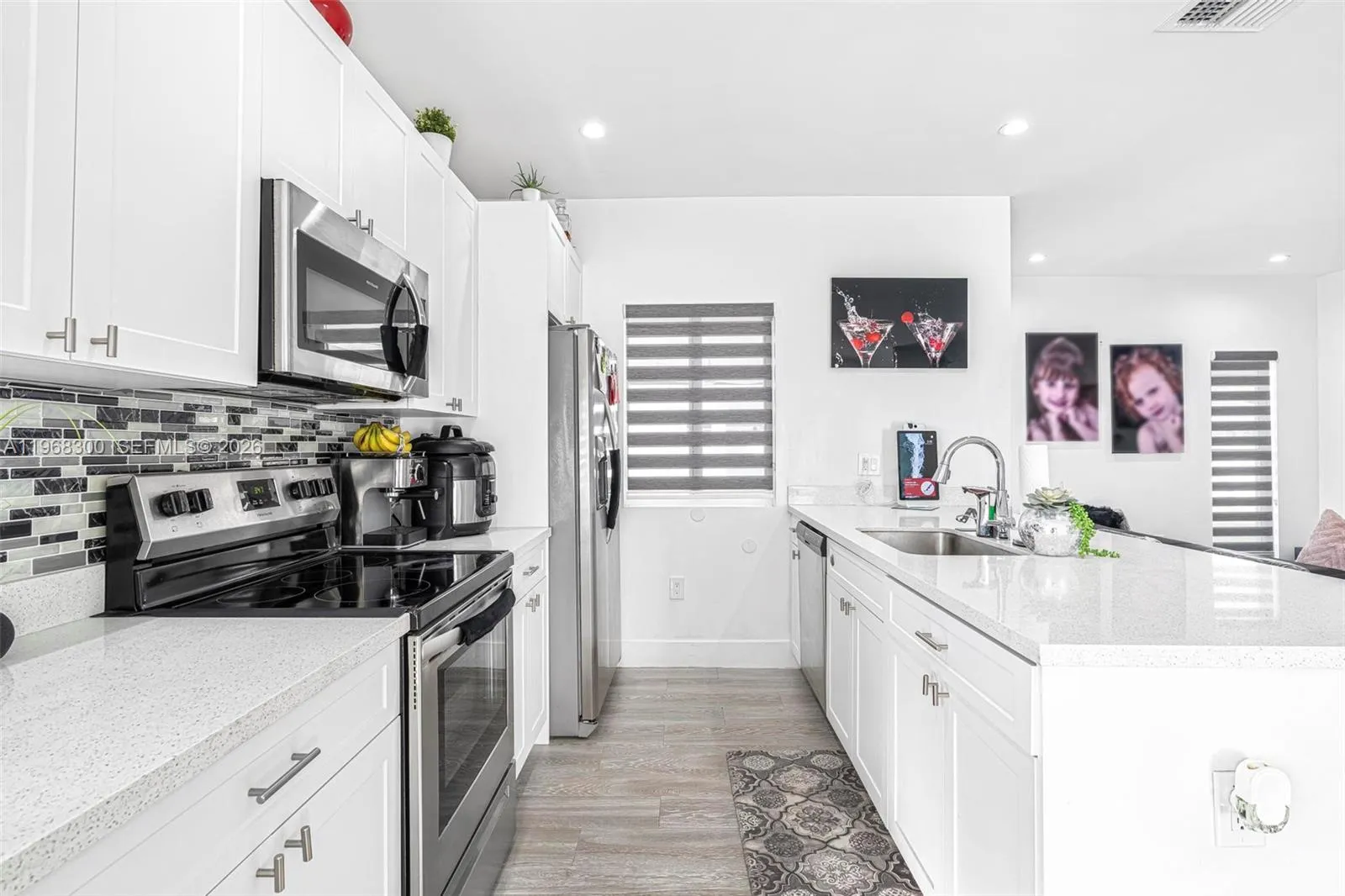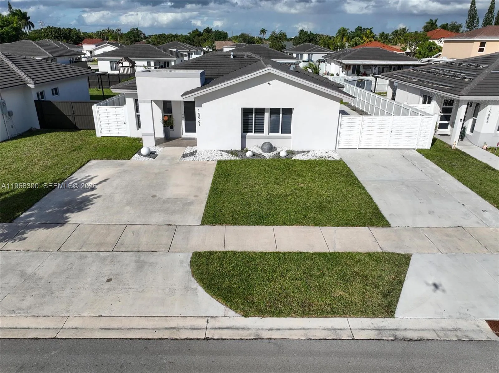 A lovely residence situated on a generous lot, this newly constructed home from 2021 stands out with the absencernof HOA fees! Inside, you’ll find three bedrooms and two bathrooms, complemented by an open-concept floor planrnfeaturing wood flooring throughout. The spacious living area seamlessly connects to a pristine white kitchenrnequipped with quartz counters and stainless steel appliances. Enjoy the added benefits of all impact windows andrndoors, an included alarm system, and the convenience of a washer and dryer. The large bedrooms come completernwith built-in cabinets. Large backyard with a covered patio, enjoy outside activities!