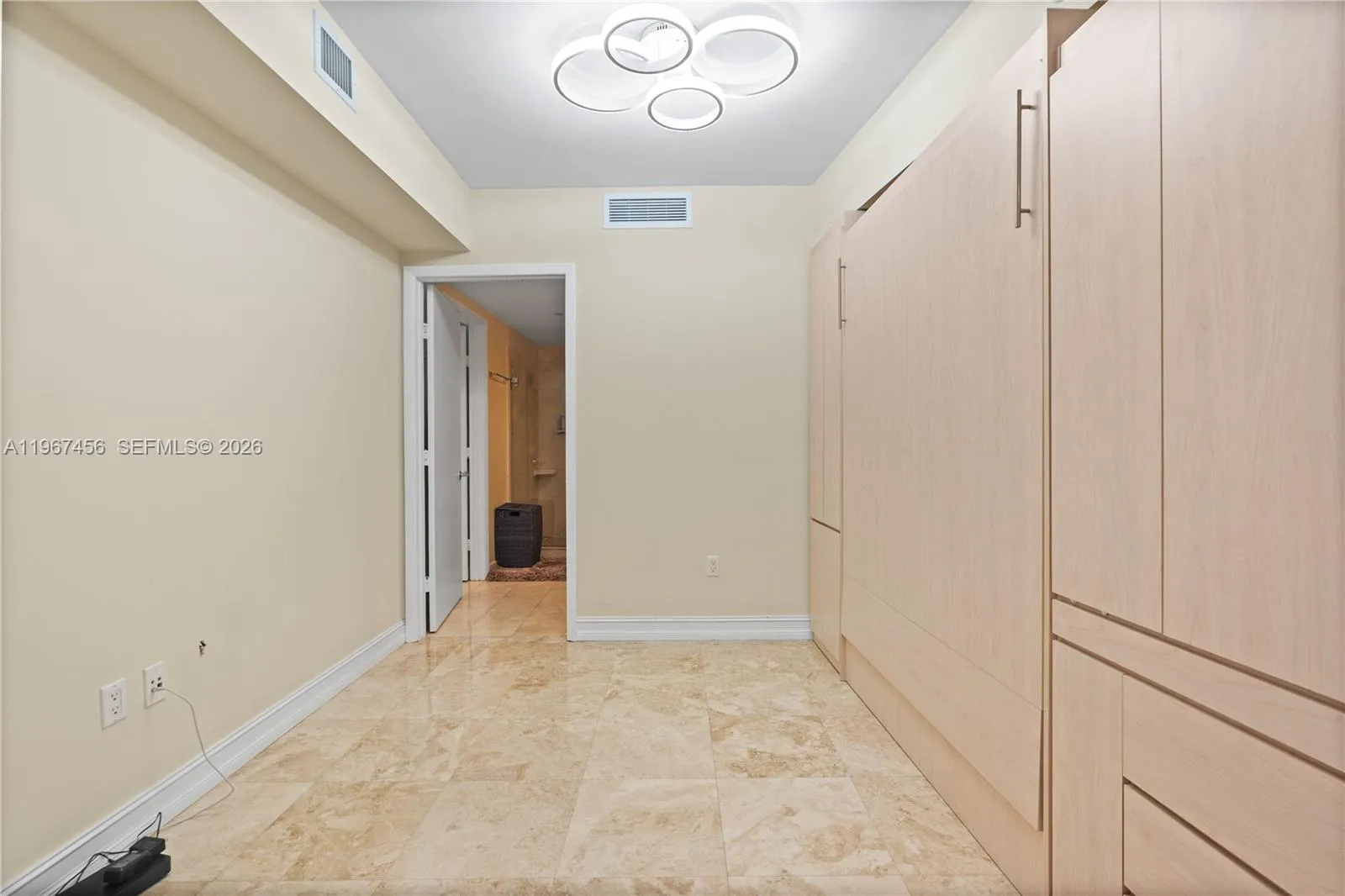 Breathtaking Intracoastal views from the 41st floor! This beautifully remodeled 1,086 sq. ft. residence features 1 bedroom plus a spacious den that can be used as a home office or second bedroom. Elegant marble floors enhance the living areas, and the upgraded kitchen includes extra kitchen cabinets for additional storage. The primary bedroom offers a large built-in wardrobe, and the den/dining area features a built-in Murphy bed for added flexibility. Located in a prestigious five-star oceanfront complex, residents enjoy a 40,000 sq. ft. full-service spa and fitness center, on-site restaurant, bar with pool service, and resort-style living on a spectacular 9-acre property with 810 feet of ocean frontage. Within walking distance to shops and restaurants and just 15 minutes to Fort Lauderdale International Airport. Easy to show.