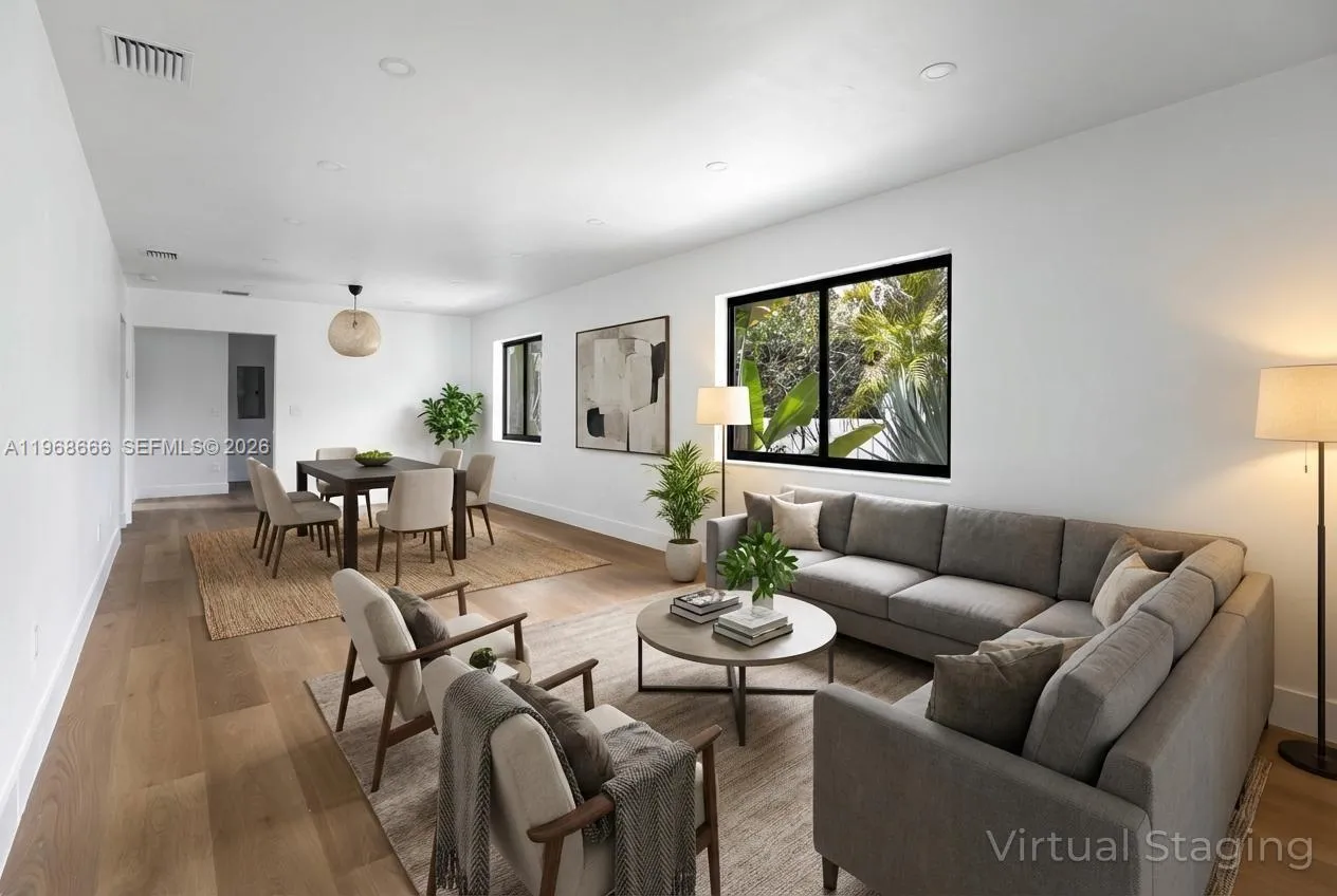 **This condo sits on a single family home which is a duplex** Impeccably renovated 3BR/2BA condo in a prime location near The Roads, only minutes from Downtown Miami. Both units are independent with private yards and parking area. Thoughtfully redesigned with modern finishes and clean architectural lines, this move-in-ready residence offers both sophistication and functionality — plus parking for two compact cars. Urban living at its finest. Contact listing agent, you wont be disappointed!