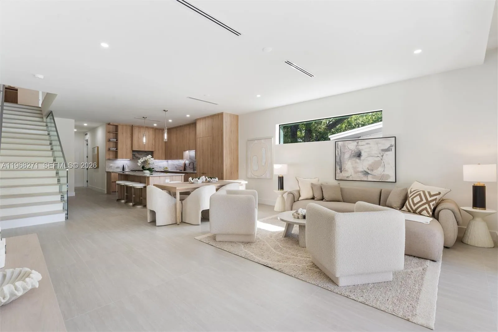 SOLID CONCRETE 2026 CONSTRUCTION — including the second floor and roof — located in a non-flood zone on one of the quietest streets in the neighborhood with No HOA. This exceptional 2-story home blends structural strength with ultra high-end designer finishes in a prime walkable location near shopping and dining, and zoned for 5-star rated Harbordale Elementary School.rnSpacious bedrooms feature en-suite baths and walk-in finished closets throughout with custom built-ins. The primary suite offers dual finished closets and a spa-inspired bath with soaking tub and oversized shower. Architectural highlights include glass railings and 8-foot doors throughout, creating an open, elevated feel.rnThe chef’s kitchen is equipped with a Thermador Professional appliance package, gas range, built-in refrigerator, imported stone countertops, and floor-to-ceiling cabinetry. An indoor bar with dedicated wine and beverage centers enhances entertaining.rnEnjoy a private backyard oasis with a saltwater, glass-tiled heated pool, expansive yard with alley access, and outdoor summer kitchen with grill, sink, and icemaker.rnSmart home features include Sonos audio, internet access points upstairs and down, and front and rear security cameras with DVR, and an EV-ready garage for convenient at-home charging.rnExpansive driveway with room for 4 vehicles, private alley access, and superior craftsmanship throughout. Luxury, privacy, durability, and walkability — all in one extraordinary residence.