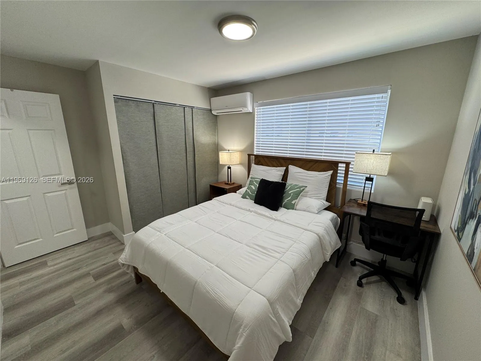 Spacious fully furnished studio with private entrance and all utilities included. This turnkey unit features a queen-size bed, dedicated workstation, large-screen TV, full private bathroom, and kitchenette area with full-size refrigerator and sink. Independent A/C control allows personalized comfort, and private patio access is located at the entry.rnrnRent includes electricity, water, and high-speed internet for simple, all-inclusive living. Ideal for tenants seeking a clean, private, move-in-ready space.rnrnMinimum lease term is 60 days. Stays under 180 days subject to an additional $100/month short-term occupancy fee. Studio intended for single occupancy unless otherwise approved by owner.rnrnConveniently located near major roadways, shopping, and local amenities.rnrnContact listing agent for showing instructions and security deposit requirements.