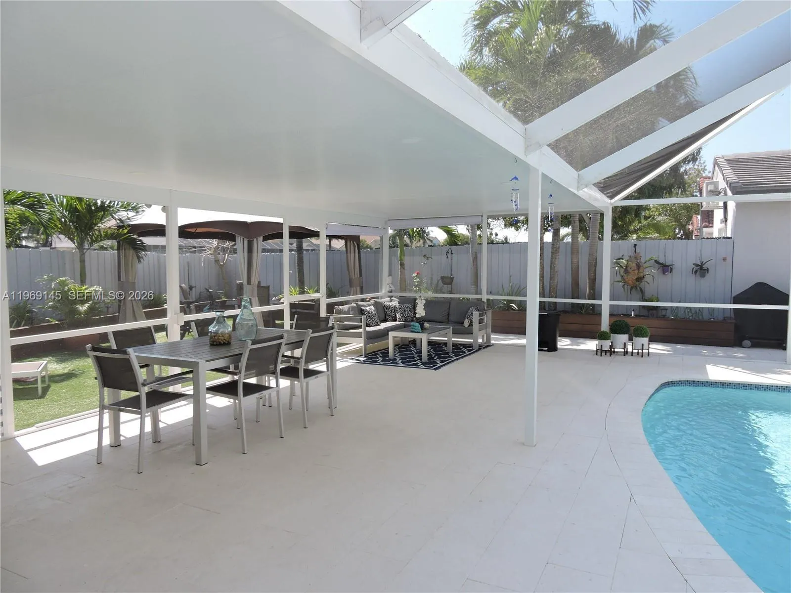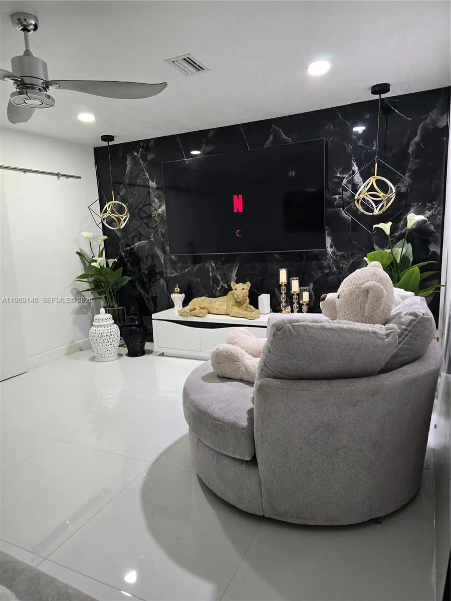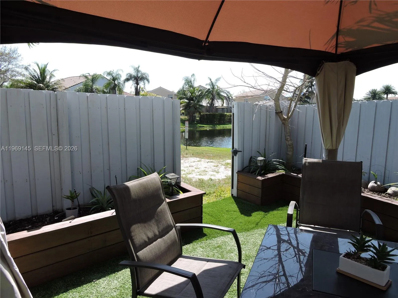 Welcome to this Beautiful fully remodeled, 3-bedroom, 3-bathroom home offers a rare opportunity to own one of the most desirable lots in The Gardens at Huntington. The location provides exceptional privacy with no rear neighbors, as it backs directly to a beautiful lake.The meticulously updated interior boasts new floors, a modern kitchen, and redesigned bathrooms. The versatile floor plan includes a converted garage that can be used as an additional family room office combination, or a 4th bedroom. Outdoor living is elevated by a beautiful patio and a large, private yard—a true luxury in this community. With this home, you get the best of both worlds: a completely updated interior and an incredibly private outdoor retreat.