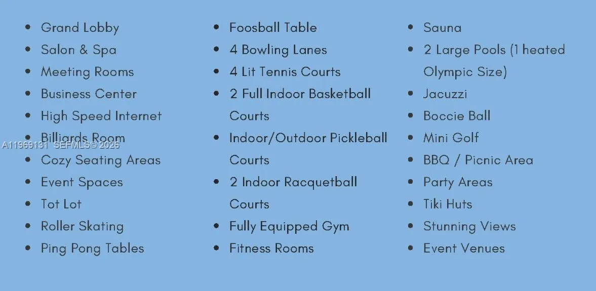 • Association Amenities: Clubhouse, Elevator(s), Fitness Center, Pool, Tennis Court(s)