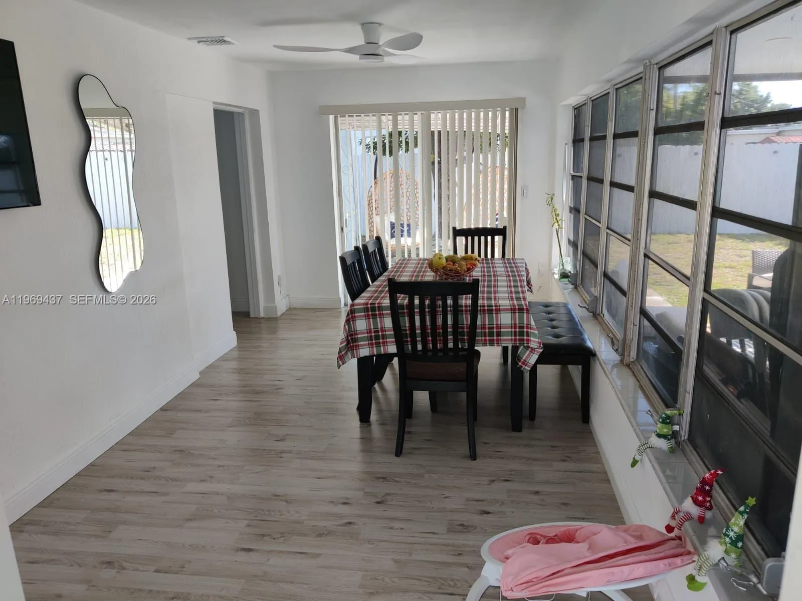 Charming one-story home in the heart of Miramar featuring 3 bedrooms and 1 bathroom. This property offers a functional layout with wood-look flooring throughout, a brigth florida room, covered parking, and inviting front porch. Built with solid concrete construction and plenty of potential to make it your own. Centrally located near shopping, schools and major roads.