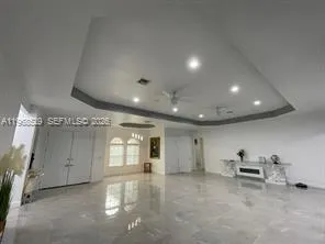 4 Bedroom 3 Bath Custom Built Home. Just Newly built in 2021. Modern Elegance and wide open floor plan with 10-foothigh ceilings in every room, accentuated by tray ceilings in the living room, kitchen, dining area, and 2 large master bedroom En-Suites with His and Hers walk in showers and separate bathing tub. Designed with a split bedroom layout on opposite sides of the home for privacy and additional 2 more guest bedrooms as well—each detail meticulously designed to elevate quality of living in this architecturally well designed home. Screened in Florida room, Laundry room. Hurricane Impact windows and doors! Turn Around Area in Driveway for easy exit to street. No HOA!