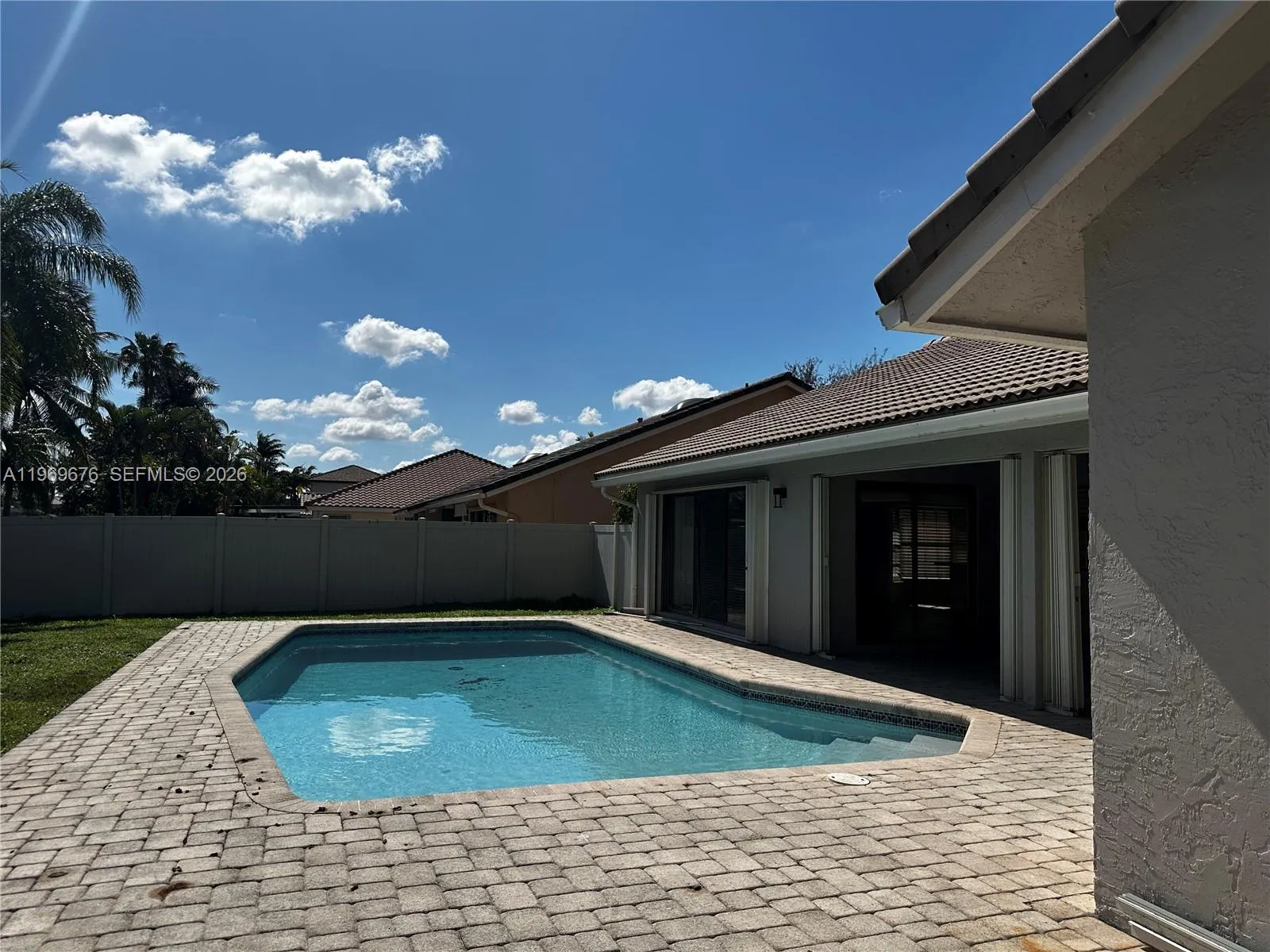 4 BED 2.5 Bath 2 car Garage with pool, tile and Laminate floors, kitchen with granite countertop, Laundry Room, Fenced yard, Patio, with canal view Accordion hurricane shutters. The best location in Jacaranda Lakes near shopping, schools and walking distance to Chabad of plantation.