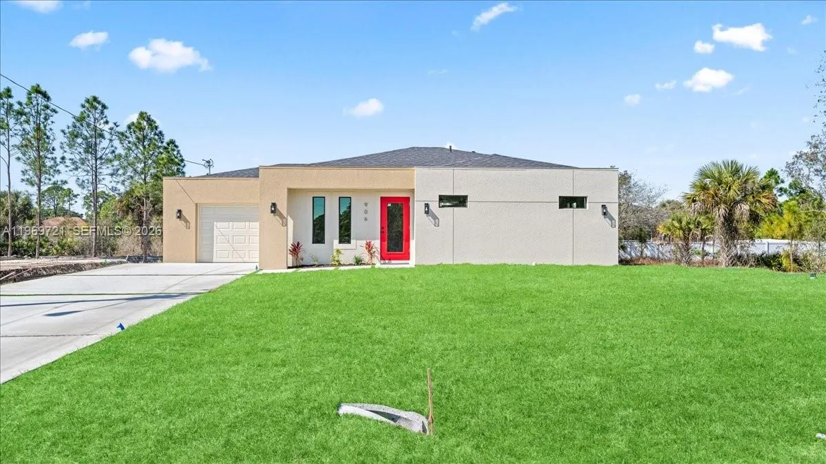 We help buyers with closing costs! BRAND-NEW CONSTRUCTION featuring modern, durable finishes designed for low maintenance and long-term efficiency, including quartz surfaces, stainless steel appliances, soft-close cabinetry, tile flooring, and impact-rated windows and doors.rnProperty includes well and septic for reduced utility expenses, in-wall pest control, new sod with irrigation, and a spacious backyard offering excellent flexibility for future improvements or additional parking. Comes with a 2-10 Home Buyers Warranty. Located in a rapidly growing area of Lehigh Acres (per location, flood insurance not required).