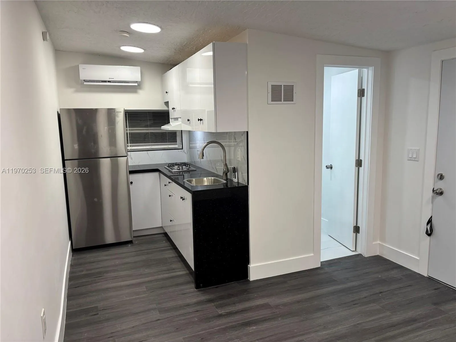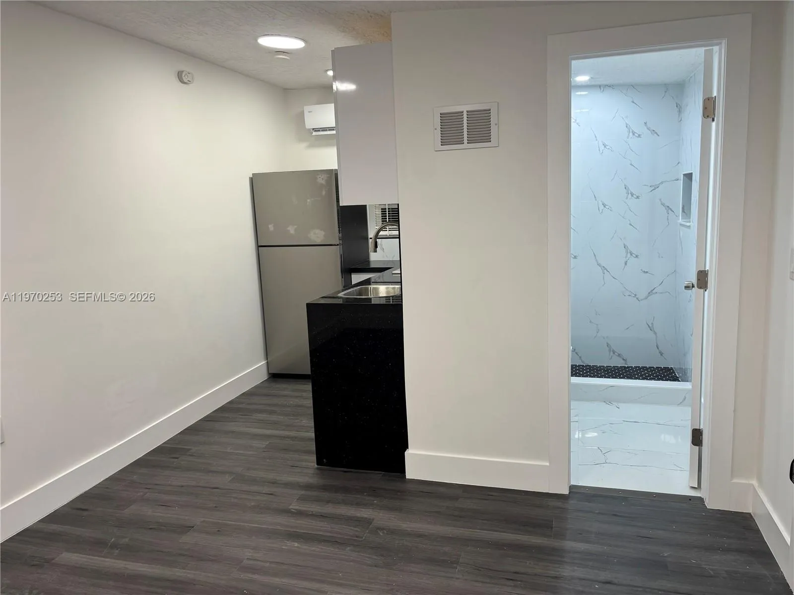 Completely remodeled efficiency featuring modern quartz kitchen countertops with white cabinets, elegant white marble floors, and a stylish new bathroom with stone shower flooring. Enjoy the comfort of split A/C, !!!! ALL UTILITIES INCLUDED!!!!!!!, Except gas, bright open layout. Located in a safe and quiet neighborhood close to St. Thomas University, shopping, dining, and major highways. Ready on March 20th, 2026.