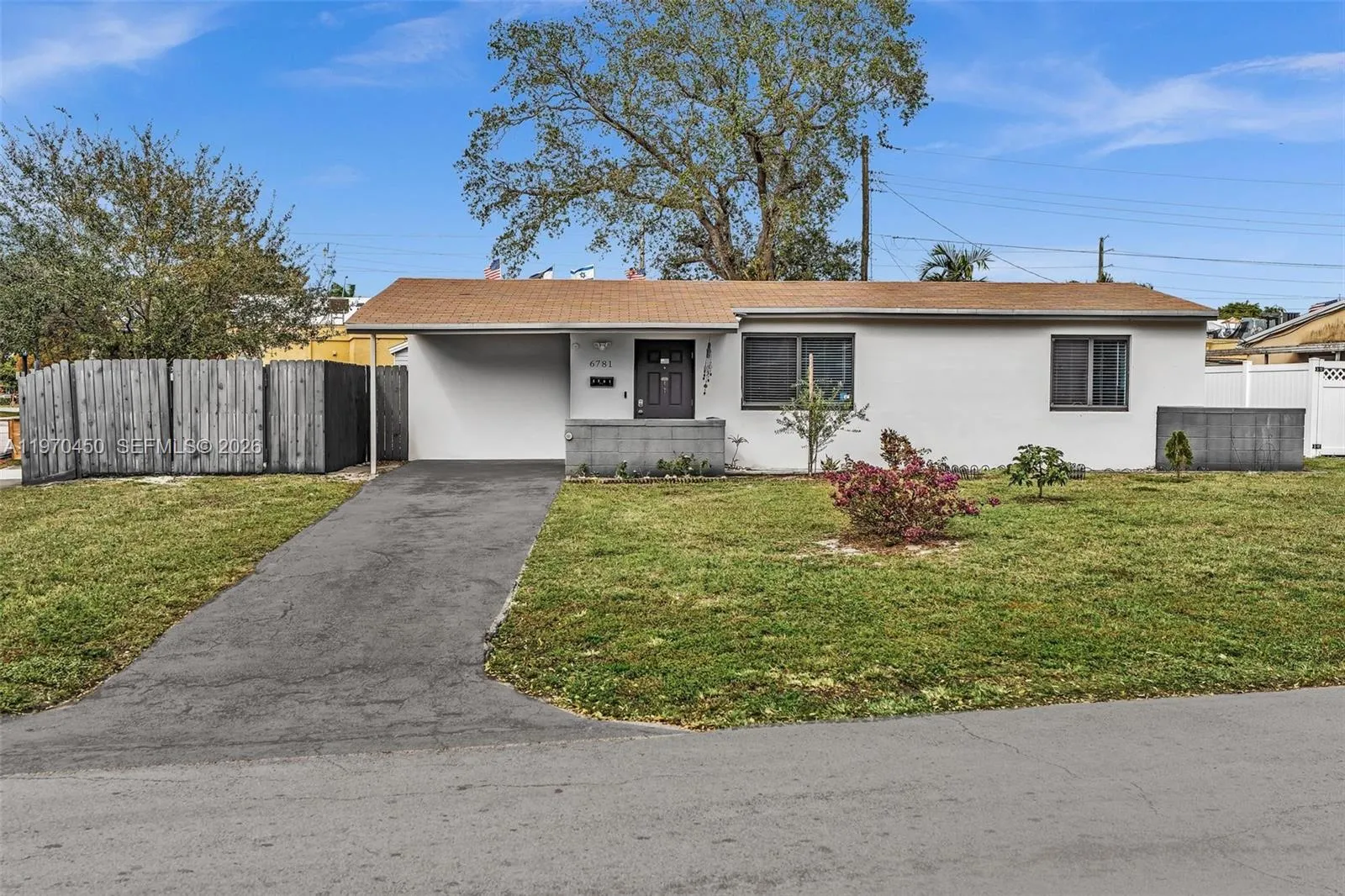 This 2/1 open concept home includes updated kitchen, newer AC and hot water heater, brand new flooring in bedrooms, fresh paint inside and out, and a large covered patio on an oversized, fully-fenced corner lot. Great location! Minutes from Hard Rock hotel and casino, convenience shopping, dining and highways. Great investment! NO HOA. 6 MONTH RENTAL ONLY