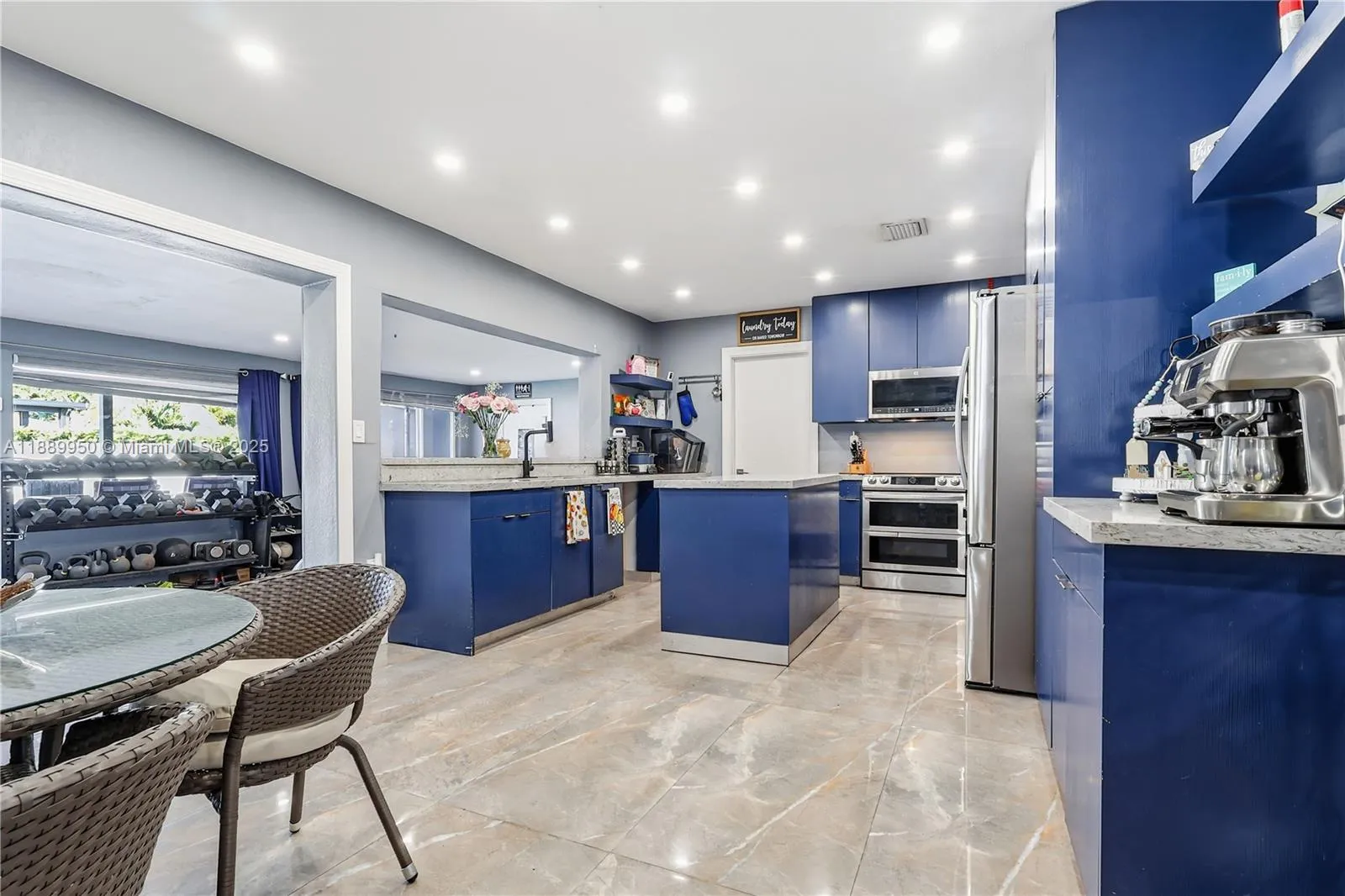 Stunningly renovated 4BD/4BA corner single-family home in a very desirable neighborhood in El Doral area. Features two spacious master suites—perfect for families or multi-generational living. Entire home upgraded with 24×48 porcelain tiles, new electrical system w/Cat6 wiring, motion lighting & smart features. Luxury spa bath with 6×6 glass steam shower, 4 shower heads, Bluetooth lights & speakers. Two new AC units. Resort-style backyard with 34×15 saltwater pool, jacuzzi, hot tub & 30×12 covered terrace. New septic, impact windows & POE video surveillance, feels brand new! ***NO ASSOCIATION FEES***