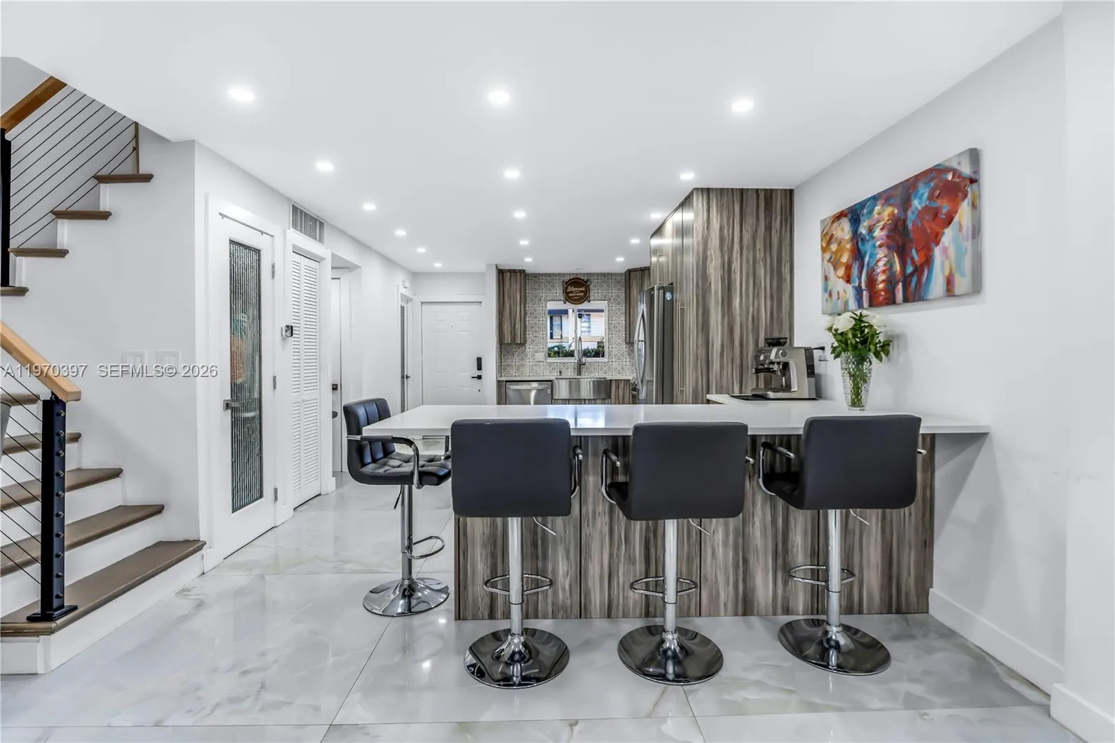 Beautifully renovated 3BR/2.5BA garden apartment townhouse in Hollywood Gardens Condo offering modern elegance and upscale finishes throughout. This move-in-ready residence features a bright, open first floor enhanced by oversized porcelain tile flooring that creates a sleek and sophisticated ambiance. The stunning European style kitchen is thoughtfully designed with quartz countertops, contemporary cabinetry, and premium finishes perfect for everyday living and entertaining.rnrnUpstairs, spacious bedrooms provide comfort and functionality, complemented by custom-built closet interiors for exceptional organization and storage. Stylish zebra blinds add a designer touch to each room while maintaining privacy and natural light control.rnrnEnjoy tranquil garden views and the convenience of two or more assigned parking spaces. Ceramic and tile flooring throughout ensures durability and easy maintenance.rnrnA true blend of comfort, style, and modern luxury living. Don’t miss this opportunity schedule your private showing today!