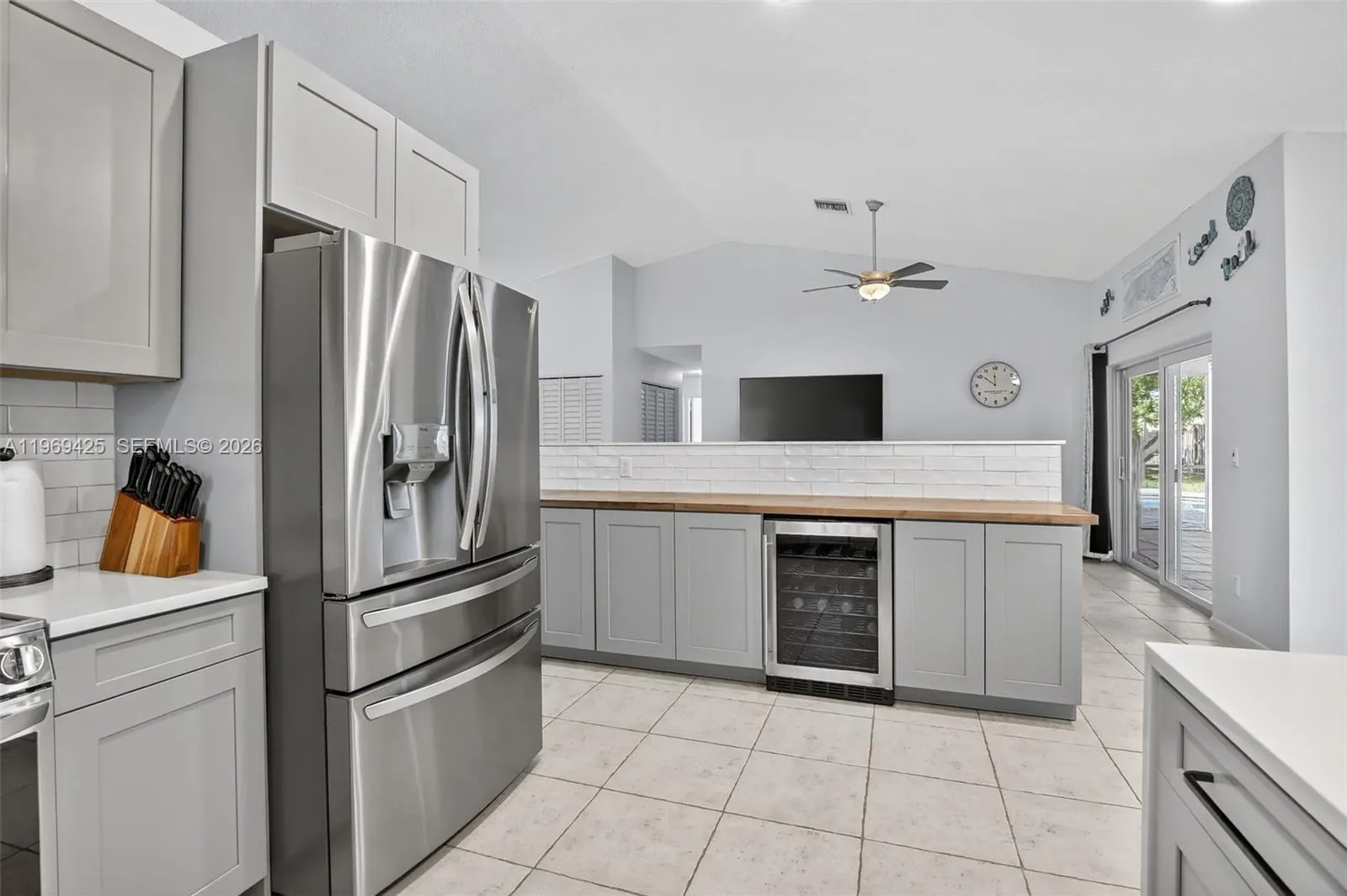 Beautiful 3BR/2BA pool home on an oversized 8,600+ sq ft lot! Impact glass windows & doors plus impact garage door. Brand-new renovated kitchen with wood cabinetry, quartz countertops, subway tile backsplash & stainless steel appliances. Island with wine fridge, extra cabinetry & butcher block—perfect for entertaining. Open layout with vaulted ceilings & recessed lighting. Neutral tile floors throughout, freshly painted interior. Formal dining & breakfast area. Screened porch, paver pool deck, large fenced yard. Low HOA. Prime location off Nob Hill Rd, next to Welleby Elementary & walk to Sunrise Civic Center!