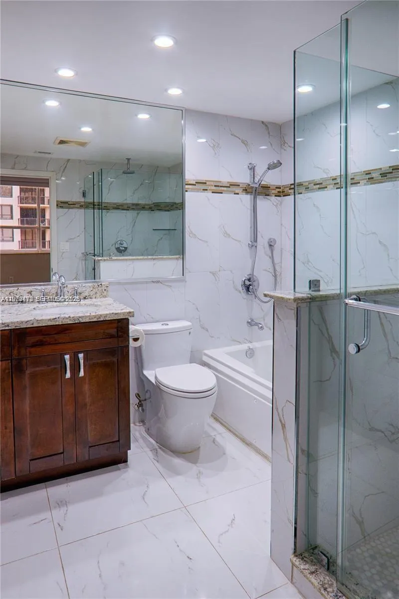 Ocean View 1-Bedroom in The Plaza of Bal Harbour Fully renovated 1-bedroom, 1.5-bath apartment at The Plaza of Bal Harbour, featuring 993 sq. ft. with breathtaking ocean views and a spacious balcony. Modern kitchen with granite countertops, elegant full-size bathtub plus independent shower, built-in bar for entertaining, open layout, and large walk-in closet. Exclusive full-service oceanfront building with 24-hour security, valet, bellman, pool, hot tub, gym, and community room. Walking distance to Bal Harbour Shops and fine restaurants. Enjoy the beach, easy to showing.