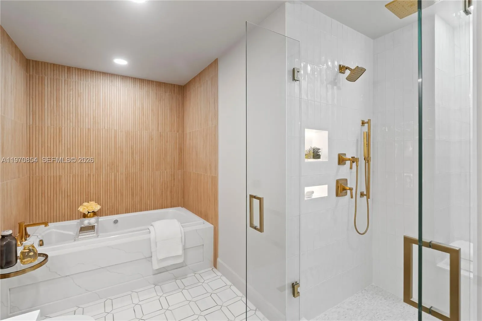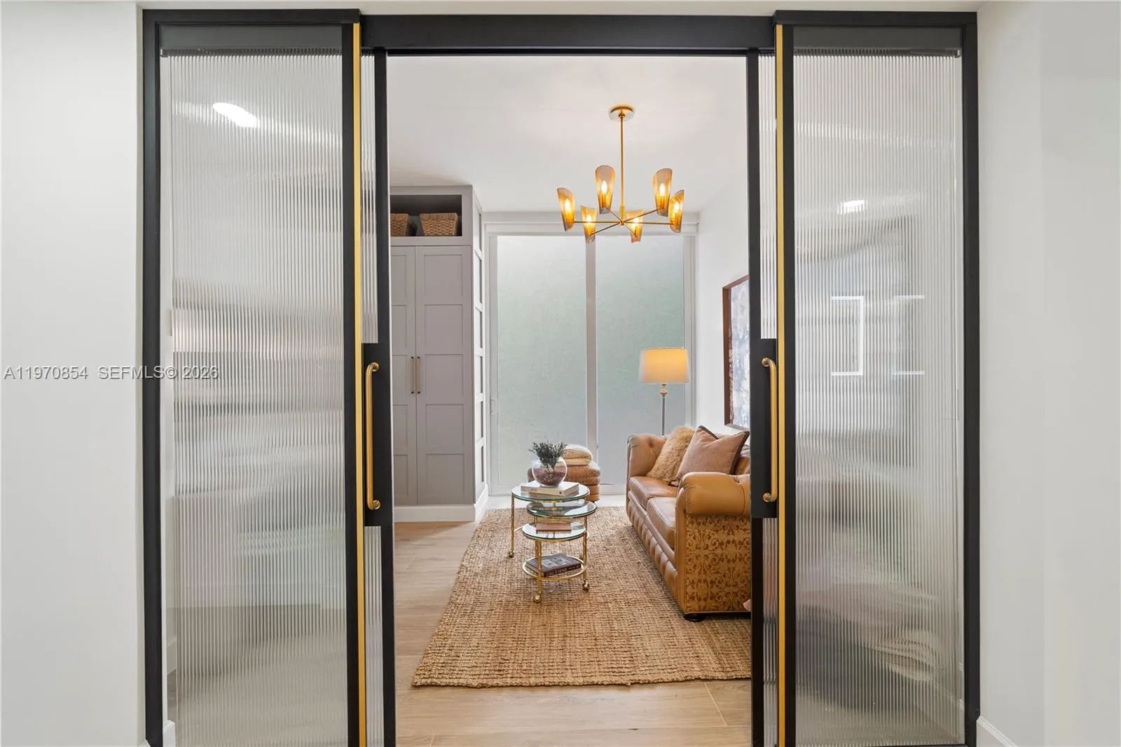 Luxury is measured in the feel ….immerse yourself in the luxury of elevated living in this premium home overlooking Granda Golf course and green tree canopies. This fully renovated three-bedroom two-bath home delivers curated comfort bathed in an abundance of natural light. This turnkey opportunity invites you to move in and simply enjoy exceptional finishes, 10-foot ceilings, and new floor to ceiling impact glass. The luxury of natural colors come to life in color drenched rooms showcasing mixed metals of solid brass and bronze, EMTEK hardware, Visual Comfort lighting, custom glass wall partition, Kohler fixtures, Italian porcelain wood look flooring, marble bath flooring , the exquisite soft veining of Calacatta gold oro, and custom cabinetry throughout. Newly reimagined, the tailored kitchen packs a punch with built in organizational features behind every door and a full suite of new Smart GE Cafe Series appliances in matte white and polished brass. All situated in one of Coral Gables’ most desired condominium communities offering 24 hour concierge, privacy, security, renovated meeting rooms and gym, pool, and (soon to be completed well ahead of most other Gables condominium communities) a full exterior restoration resulting in a magnificent premium property. Also listed for SALE MLS: A11886814