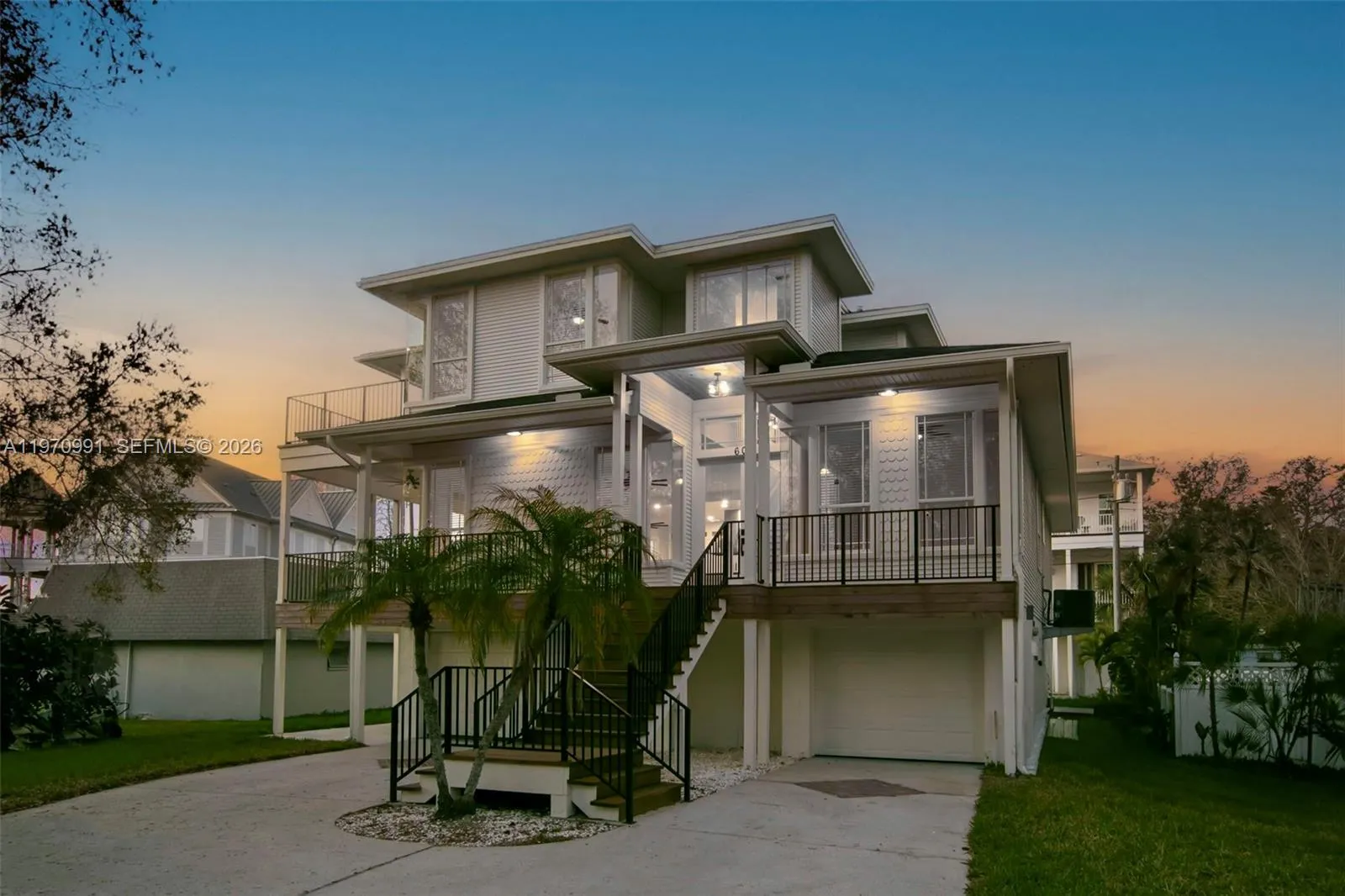 Motivated Seller! Big Price drop .. Discover coastal living at its finest in this fully renovated Key West-style retreat nestled in the heart of Crystal Beach. Located just steps from the Gulf of Mexico on the picturesque shores of St. Joseph Sound, this expansive 5-bedroom-4 bath home blends luxury, functionality, unbeatable location, outstanding sunsets, boating, biking on the Pinellas Trail and of course quiet relaxation. Step inside the 3000 square foot home to soaring ceilings, oak hardwood floors, and an open concept layout that flows seamlessly from the spacious living room to the chef inspired kitchen. Three bedrooms are located on the 2nd floor along with 2 bathrooms, another bedroom is on the first floor with its own bathroom, while your private master suite with dual walk-in closets, a spa like bath with freestanding tub, a private balcony with panoramic Gulf water Views takes over the whole Top floor. The 3-story home also includes amazing staircases and an elevator to make this home just one of a kind. Outside, relax on one of four newly rebuilt balconies, surrounded by tropical landscaping and coastal breezes. also includes a 5 car garage . Crystal Beach offers an amazing community, great schools, relaxation, paradise. No HOA.