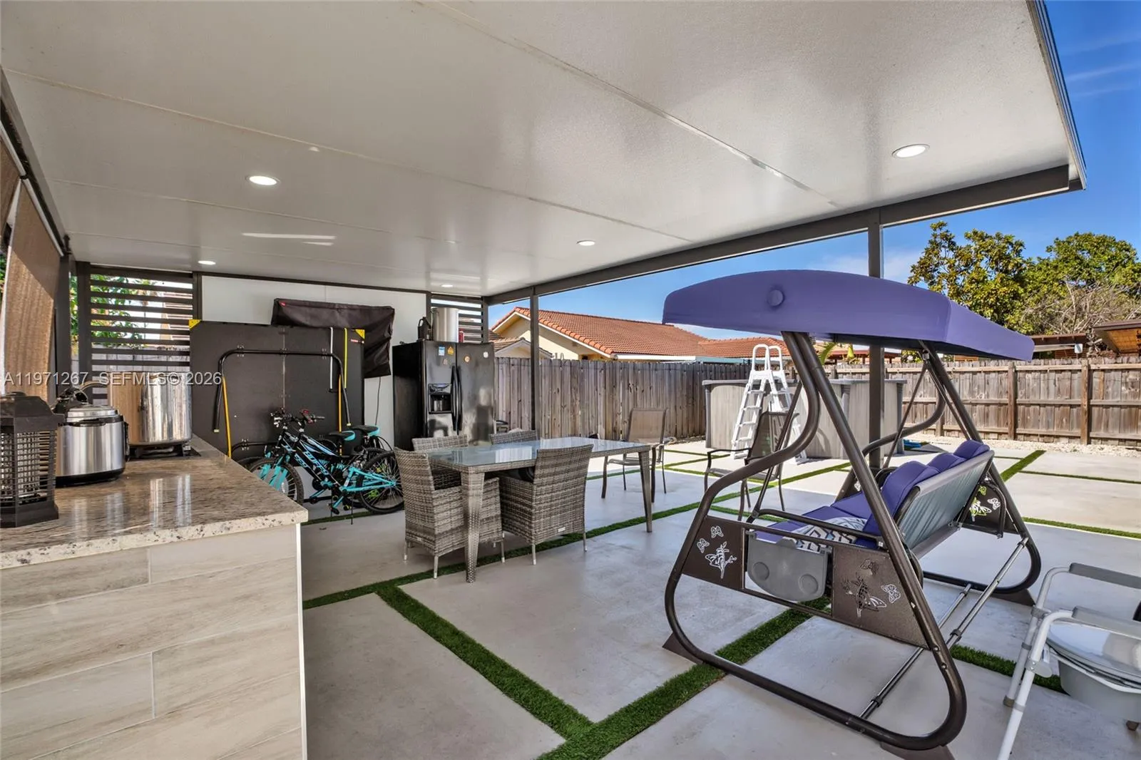 This beautifully renovated home offers the perfect combination of modern upgrades, space, and functionality. Completely remodeled in 2023, the property features 4 bedrooms and 3.5 bathrooms, including a private 1/1 in-law quarters with independent entrance — ideal for extended family and/or guests. Major updates include a 2020 roof and A/C system, impact windows and doors throughout, and a generator connection for added peace of mind (equipment not available). Inside, enjoy a dedicated home office, a custom TV feature wall built for up to an 85” screen, and a modern layout designed for comfortable living. The backyard is built for entertaining, featuring an outdoor kitchen, above-ground pool, and a convenient patio half bath. Additional highlights include a Tesla charger and AT&T fiber internet availability. Located in a quiet residential area of Miami (33177), this move-in-ready home will be available at the end of April.