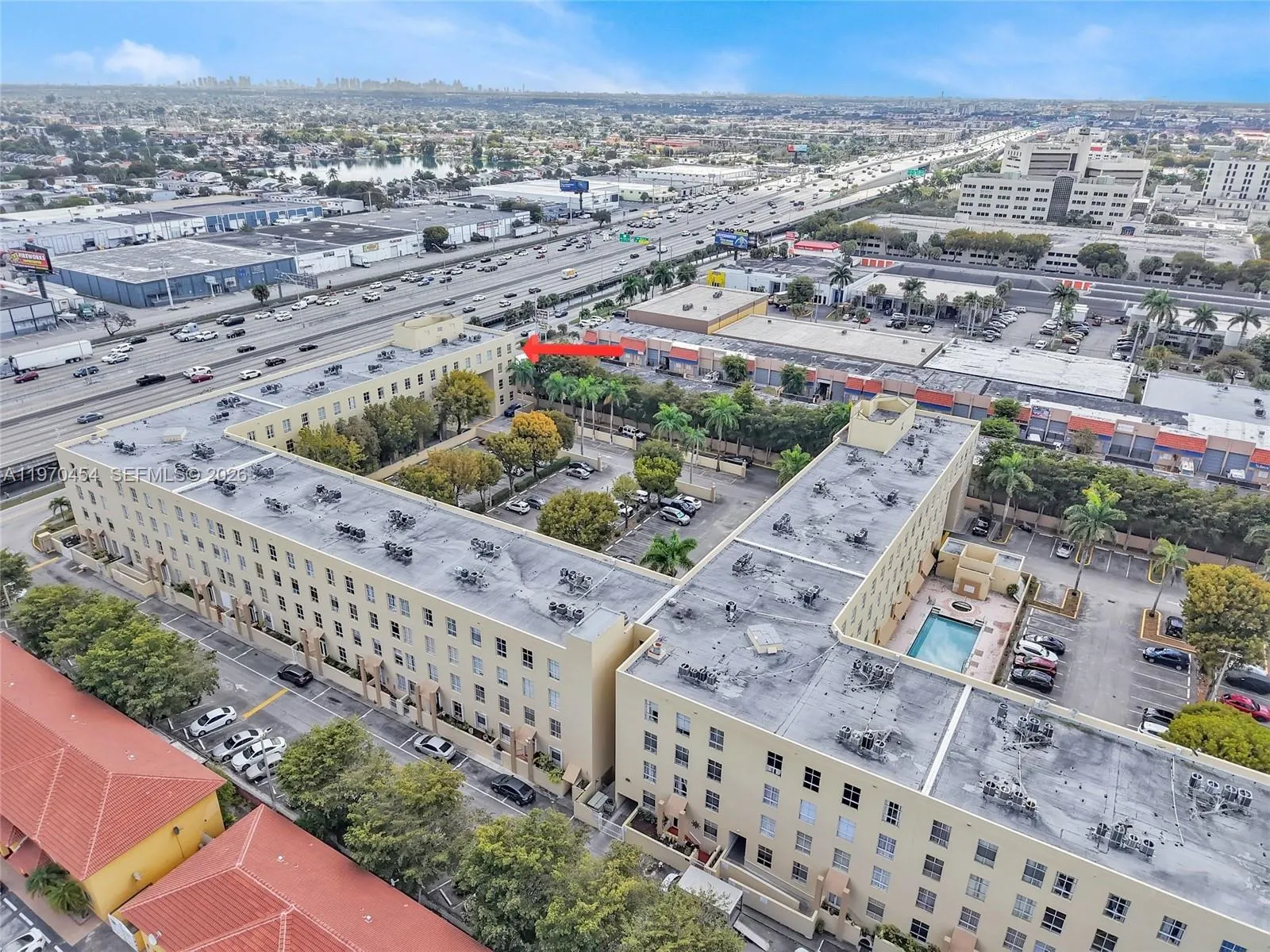 Rare bi-level corner penthouse condo! Only 4 of this model exist in Royal Palms, and this is the larger 1030 sq ft end unit! The entry is on the 4th floor with an open living/dining area and a half bath. Downstairs are two bedrooms, each with a full bath and walk-in closet. This unit has an end-of-hall location for great privacy and is less than 20 steps to the side staircase, leading you near the complex entrance and your two assigned parking spots. Additional parking spots can be leased. Ample visitor parking is near the pool/spa area. Located 0.4 miles from Palmetto Hospital and situated alongside Palmetto Expressway for easy commutes. Seller has paid off the assessment. Near shopping malls, schools, Miami Dade College, restaurants, and medical offices. Zoned for excellent schools. Pet friendly. $250 fee for pets (dogs, cats, birds.) Maintenance includes water. 2023 Roof. Milestone Inspections completed.