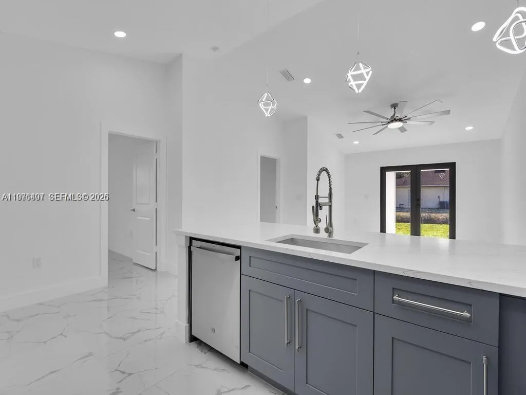 Stunning corner duplex located directly across from the only golf course in the area! Each unit features stainless steel appliances, porcelain tile flooring throughout, quartz countertops, impact windows, exterior security cameras, and a sprinkler system. Enjoy the convenience of a private one-car garage with epoxy-style floors plus an independent side entrance for added privacy and flexibility. Positioned on a corner lot, the property offers extra space, natural light, and great curb appeal. Move-in ready and easy to show.