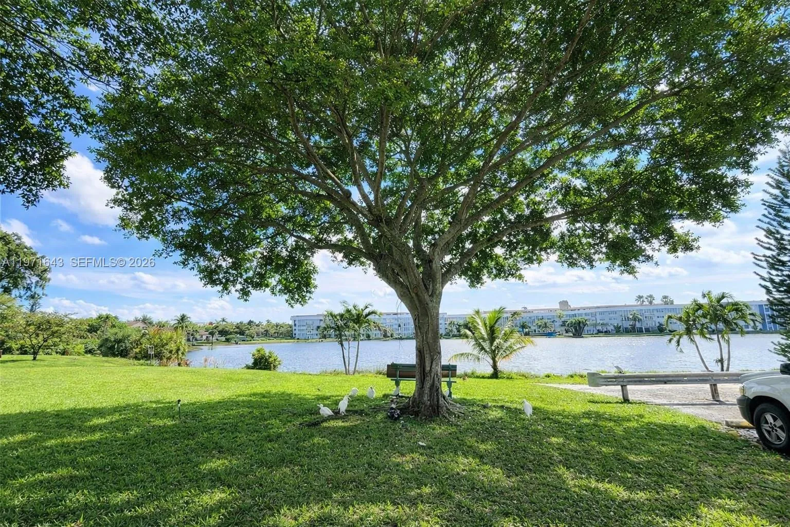 THIS IS A 55+ COMMUNITY. Unfurnished 1bed and 2 Full bathrooms on a second floor in a gated community with lake front. Enjoy a quiet, well kept community, clean and calm atmosphere. Unit features stainless steel appliances, large living/ dining room, tile flooring, enclosed balcony with garden view. One assigned parking spot, cable and water included. Laundry room close to unit.