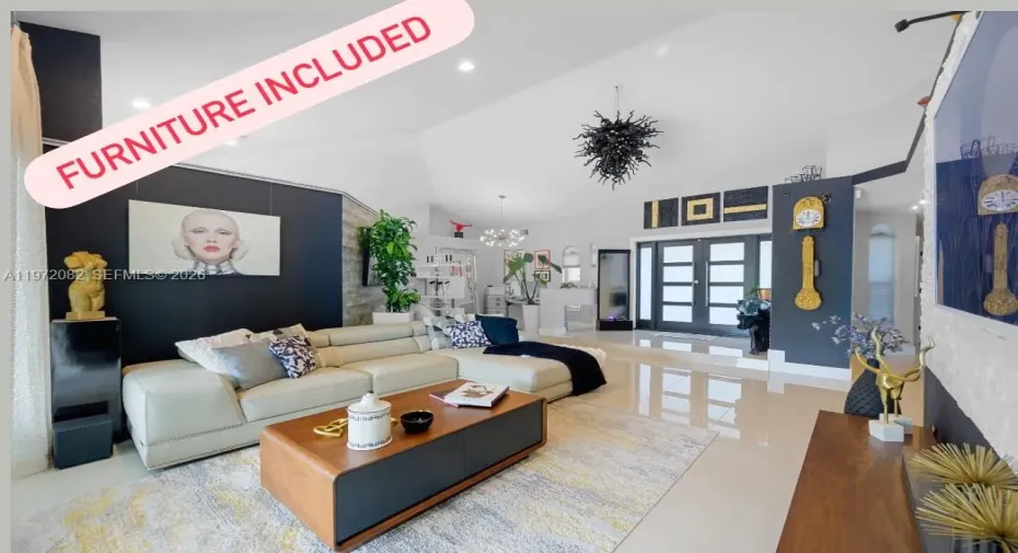 BACK ON MARKET! Your second chance to own this contemporary masterpiece in the prestigious gated community of Sunset Springs-Weston,Fl. This fully furnished 3bedrooms + Den smart-home sanctuary offers an unparalleled blend of modern luxury and tropical serenity. Step through the upgraded front entrance into a light-filled interior featuring porcelain tile floors, designer accent walls, and upgraded light fixtures. The open-concept layout is complemented by motorized window treatments and high-end finishes throughout.rnThe kitchen flows seamlessly to an entertainer’s dream backyard. Enjoy a resort-style heated salt pool and jacuzzi, two fire features, and a premium outdoor BBQ kitchen with a bar and wine fridge—all overlooking peaceful lake views. The property is a private tropical orchard, featuring mature Mango, Fig, Papaya, Avocado, and Kiwi trees, accented by Italian Cypresses and custom landscape lighting.Built for efficiency and peace of mind, the home includes a full solar system, EV charger, hurricane impact windows (4 yrs), a new flat tile roof (2 yrs), and new AC (2.5 yrs). The garage features custom storage, closets, and a second refrigerator. This turnkey, waterfront gem in one of Weston’s most verdant communities won’t last long again.rnMinutes from A+ rated schools (Indian Trace, Tequesta Trace, and Cypress Bay High)and close to Weston Town Center and much more…