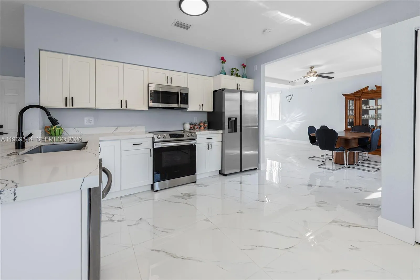 Welcome to Estates at Mendicino in Homestead! This spacious 4BR/3.5BA two-story home blends comfort, style, and valuable upgrades. BRAND NEW IMPACT WINDOWS! A grand double-door entry opens to elegant tile flooring, soaring vaulted ceilings, and a bright open-concept layout ideal for everyday living and entertaining. The kitchen features white cabinetry, stainless steel appliances, pantry storage, and stunning Calacatta quartz countertops, plus an eat-in counter and breakfast nook that flow seamlessly into the main living areas. The large family room offers wide doors leading to the backyard, creating effortless indoor-outdoor living. Enjoy a spacious yard with mature fruit trees—some already producing—for your own private retreat. Upstairs, laminate flooring runs throughout. The generous primary suite includes a walk-in closet and spa-style bath with dual sinks, soaking tub, and separate shower. A private mini-suite with full bath and walk-in closet is perfect for guests or multigenerational living. Additional features include upstairs laundry, ample storage, and a 2-car garage with EV charging capability. Impact windows and doors provide full hurricane protection, improved energy efficiency, and potential insurance savings. Gated community with 24-hour security, clubhouse, gym, and pool. Minutes to hospitals, shopping, dining, Florida Turnpike, and US-1. PROOF OF FUNDS AND/OR PRE-APPROVAL LETTER REQUIRED PRIOR TO SCHEDULING A SHOWING OF THE PROPERTY.