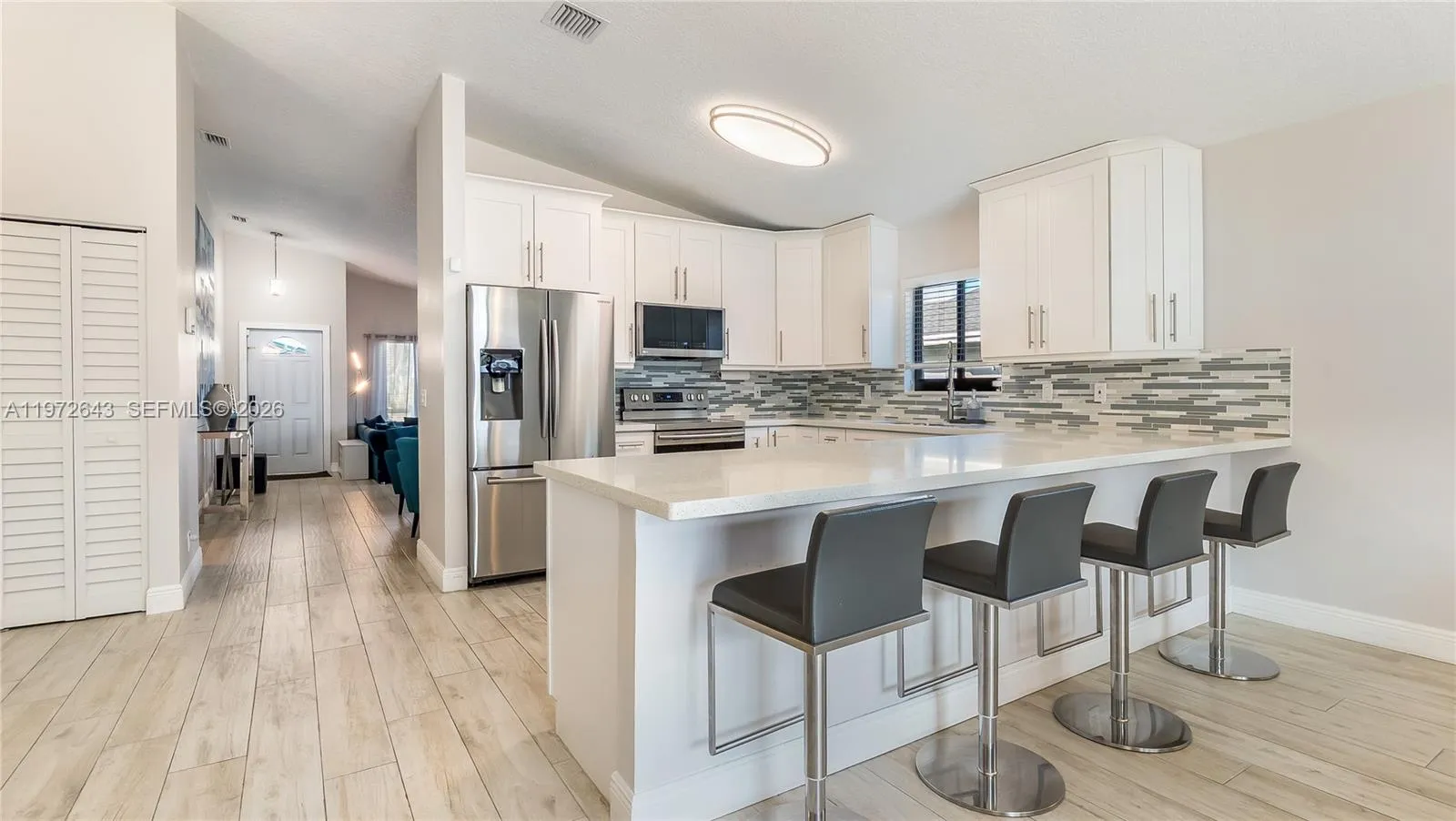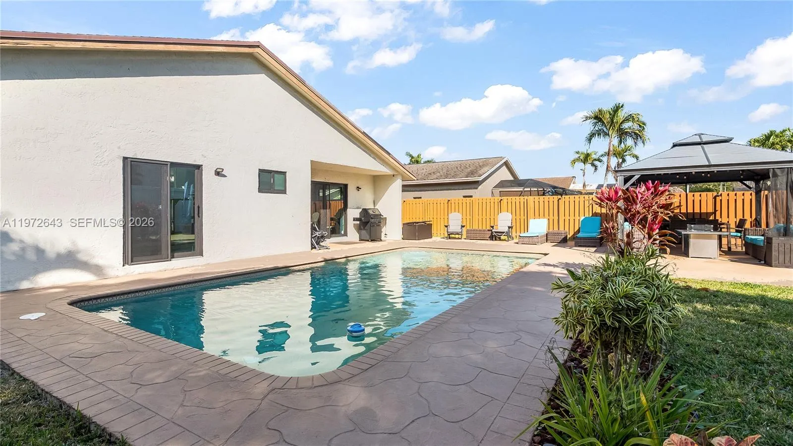 Homes with this level of upgrades and protection rarely hit the market schedule your showing today before it’s gone. Completely reimagined and move-in ready, this stunning home has been renovated from floor to ceiling with today’s most desirable upgrades. Must see in person. Featuring all-tile flooring, updated electrical and plumbing, fresh interior paint, and a beautifully redesigned kitchen with new cabinetry and Samsung stainless steel appliances, every detail has been thoughtfully upgraded. The remodeled primary bath showcases modern cabinetry and a sleek upgraded shower, while custom window treatments and a newly designed master closet add both style and function. Major big-ticket improvements provide peace of mind: Roof 2017, impact windows and doors (2019), new AC (2022), new pool heat pump, upgraded attic insulation with heat-vented roof, and an air-conditioned garage with insulated door. Step outside to your private backyard retreat featuring an enlarged pool patio, brand-new gazebo, new fencing with lighting, and a full exterior camera system. A Brinks alarm system with video doorbell and garage camera adds an extra layer of security. True two car garage with with spacious storage Located just minutes from shopping malls, grocery stores, dining, and major highways, this home offers the perfect blend of luxury, location, and long-term value.