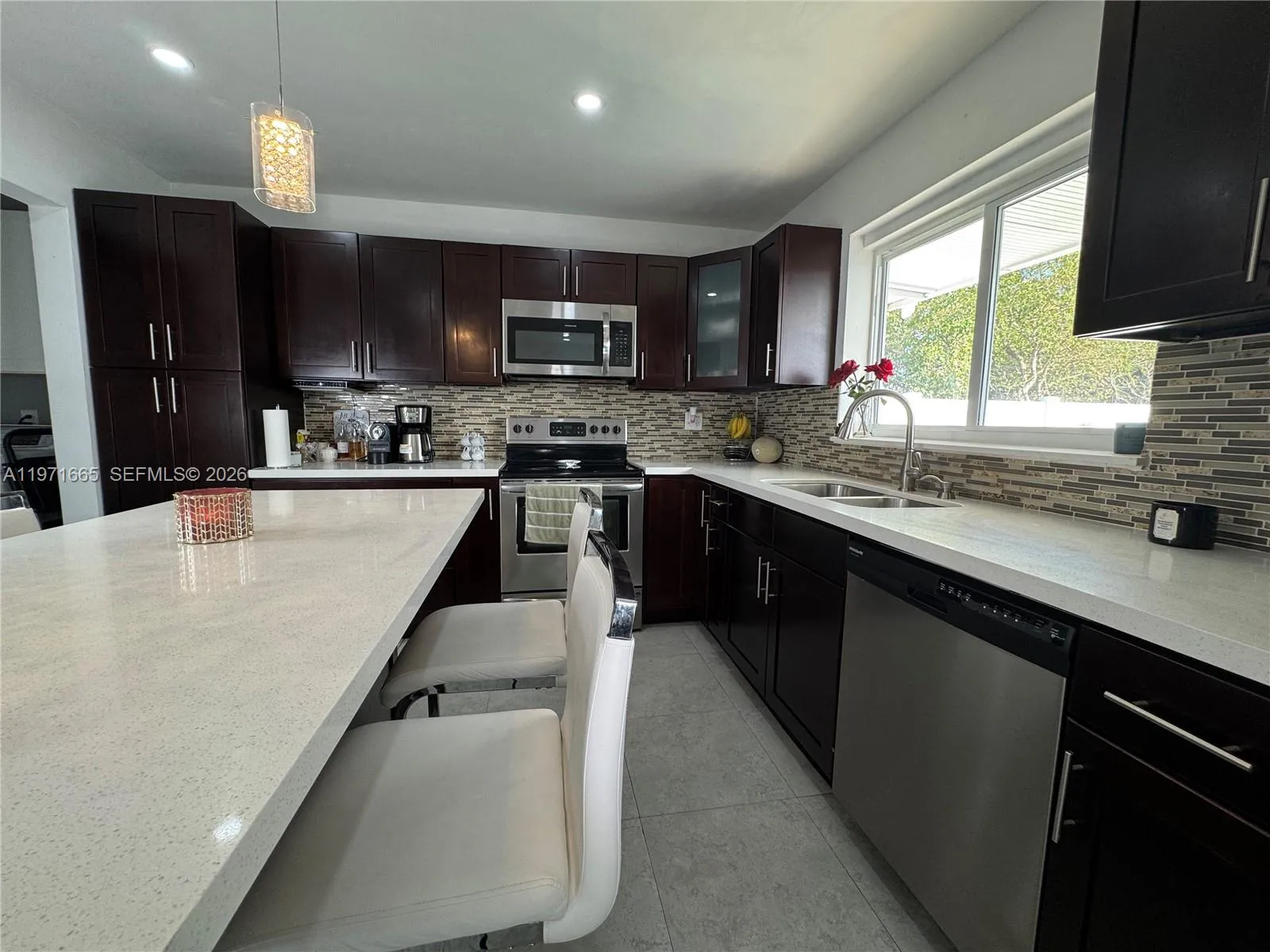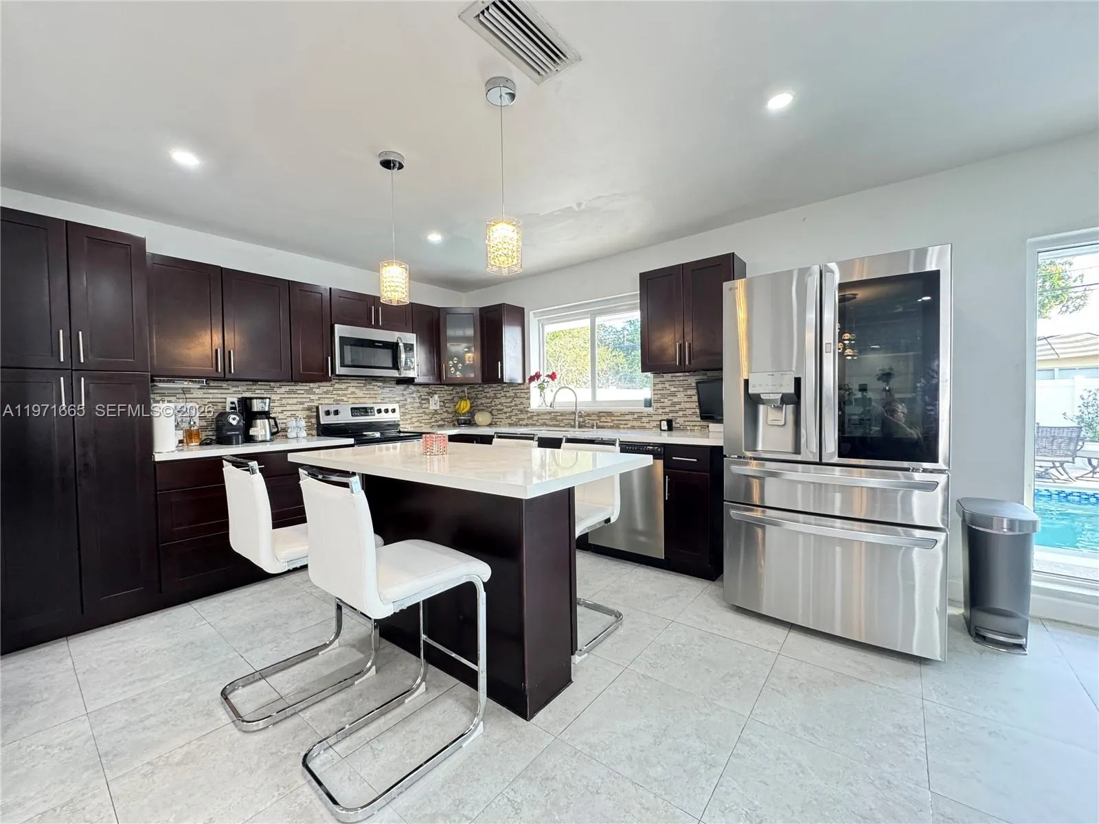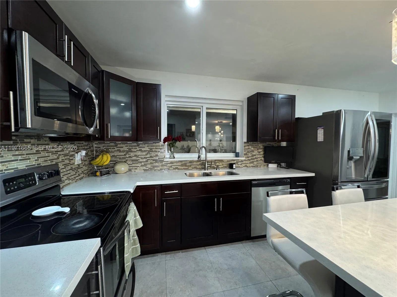 Beautiful 4 Bedroom / 2 Bathroom Fully Remodeled HomernrnStunning, move-in-ready residence featuring a new roof, new A/C, renovated kitchen, and fully remodeled bathrooms. The interior offers expansive glass walls that provide a breathtaking view of the pool and newly finished stone backyard, creating the perfect indoor–outdoor lifestyle.rnrnThe home showcases upgraded appliances (refrigerator not included), modern ceramic tile flooring throughout the main living areas, and carpet in all bedrooms. The spacious primary suite includes a walk-in closet and a beautifully updated master bathroom. Enhanced lighting throughout the home adds a bright and elegant touch.rnrnAn additional versatile room can be used as an office, guest room, studio, or efficiency—adding exceptional flexibility and value.rnrnEnjoy a double garage plus parking for up to eight additional vehicles, along with a large pool and terrace ideal for entertaining. This property offers comfort, functionality, and style in one exceptional package.rnJust 25–35 minutes to Miami Beach or Fort Lauderdale Beach, 20–25 minutes to Fort Lauderdale-Hollywood International Airport, 30–40 minutes to Miami International Airport, only 10–12 minutes to Pembroke Lakes Mall, and 15–20 minutes to Sawgrass Mills — everything you need within easy reach.