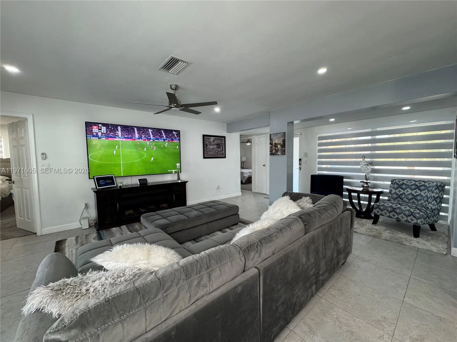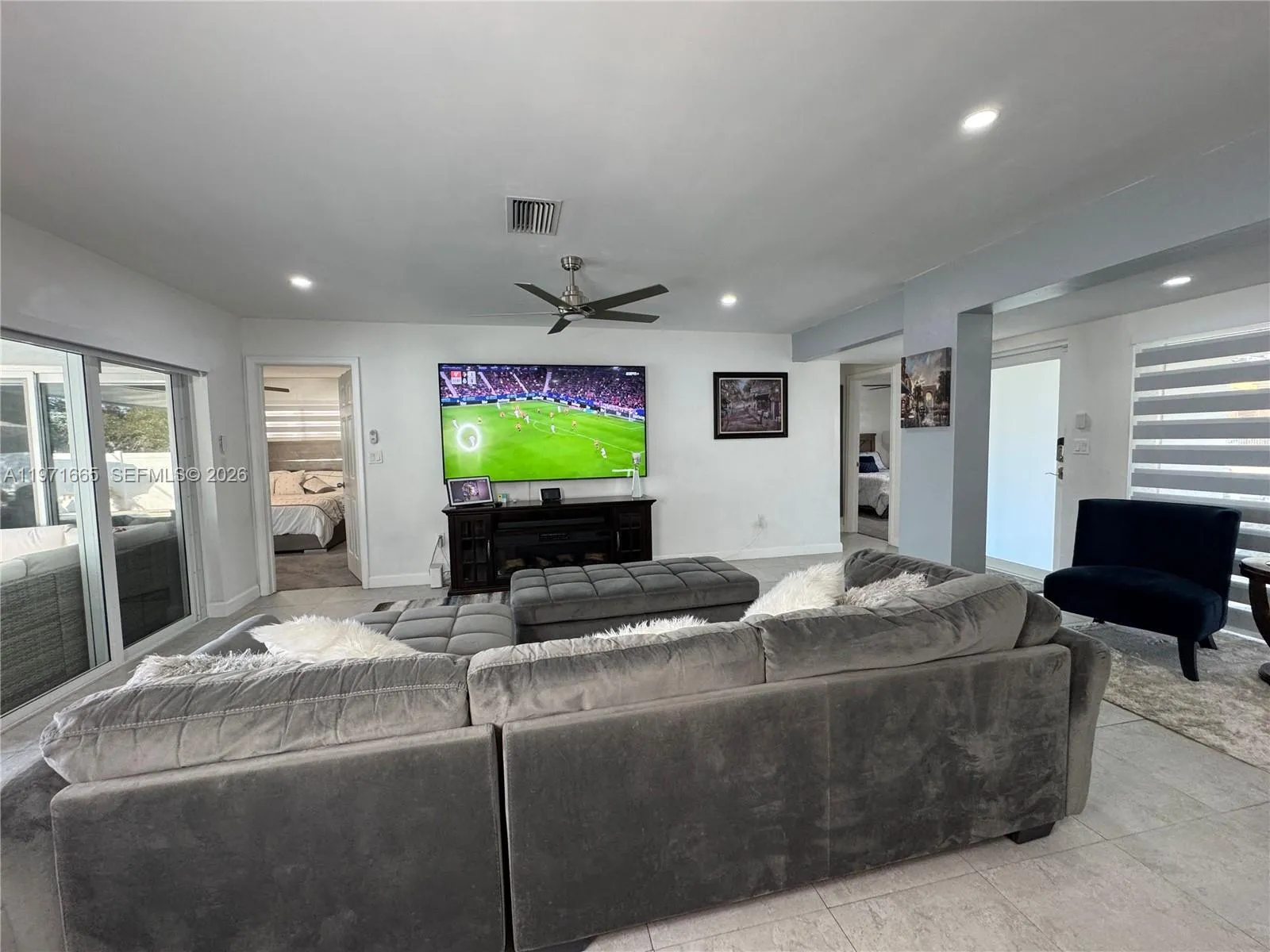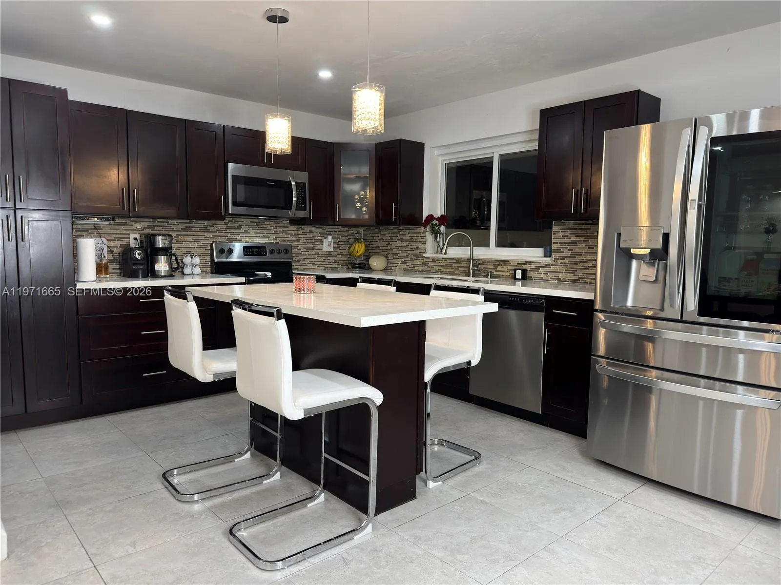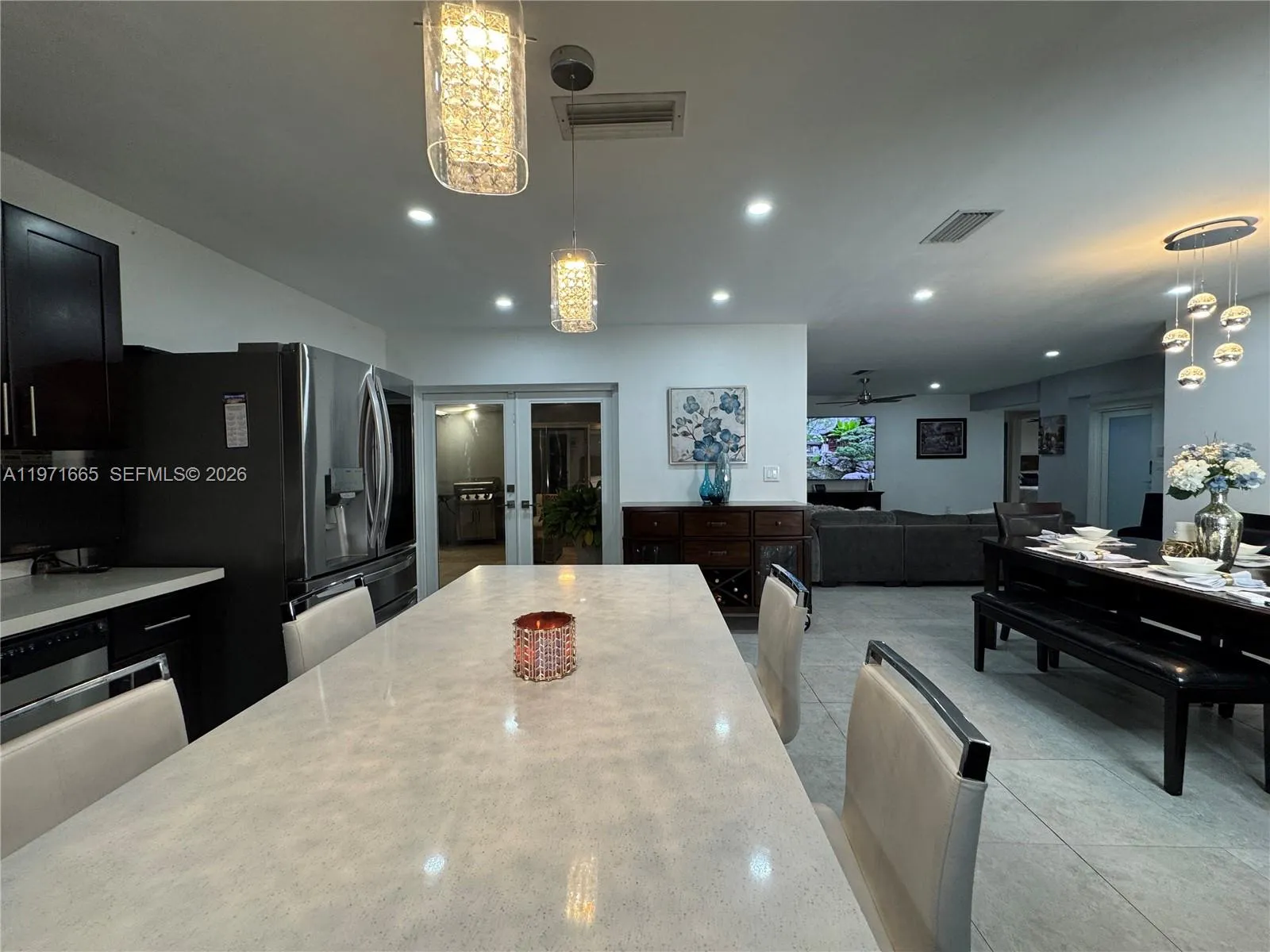 Beautiful 4 Bedroom / 2 Bathroom Fully Remodeled HomernrnStunning, move-in-ready residence featuring a new roof, new A/C, renovated kitchen, and fully remodeled bathrooms. The interior offers expansive glass walls that provide a breathtaking view of the pool and newly finished stone backyard, creating the perfect indoor–outdoor lifestyle.rnrnThe home showcases upgraded appliances (refrigerator not included), modern ceramic tile flooring throughout the main living areas, and carpet in all bedrooms. The spacious primary suite includes a walk-in closet and a beautifully updated master bathroom. Enhanced lighting throughout the home adds a bright and elegant touch.rnrnAn additional versatile room can be used as an office, guest room, studio, or efficiency—adding exceptional flexibility and value.rnrnEnjoy a double garage plus parking for up to eight additional vehicles, along with a large pool and terrace ideal for entertaining. This property offers comfort, functionality, and style in one exceptional package.rnJust 25–35 minutes to Miami Beach or Fort Lauderdale Beach, 20–25 minutes to Fort Lauderdale-Hollywood International Airport, 30–40 minutes to Miami International Airport, only 10–12 minutes to Pembroke Lakes Mall, and 15–20 minutes to Sawgrass Mills — everything you need within easy reach.