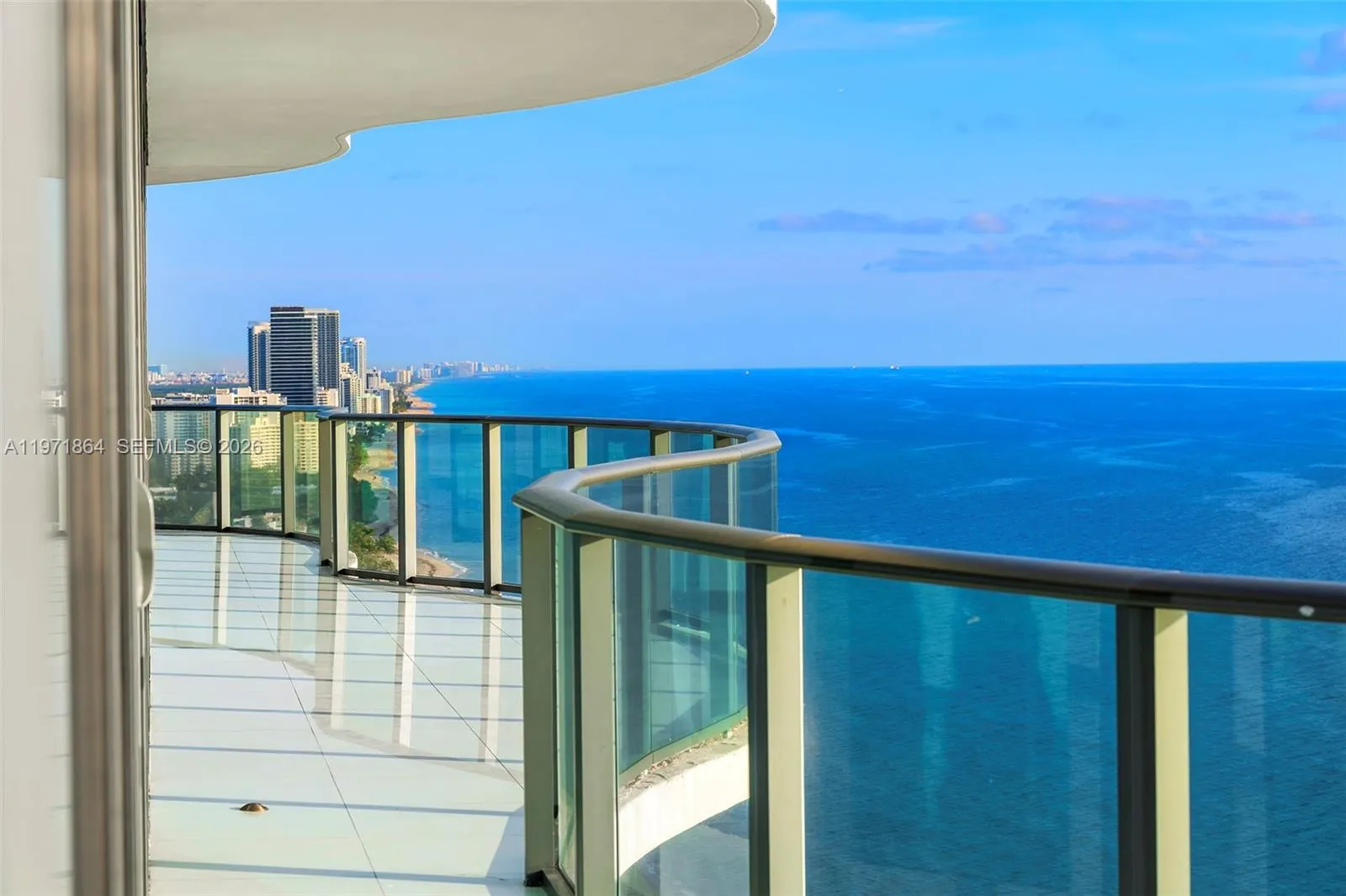 Welcome to an extraordinary expression of oceanfront living on Level 30, where privacy, scale, and design converge in this full-floor glass masterpiece spanning over 7,100 SF of seamless indoor-outdoor lavish living. Completely reimagined with no compromise, the residence is inspired by the timeless aesthetic of internationally renowned Dutch designer, Jan des Bouvrie, embodying architectural clarity against a backdrop of endless sea and sky. Sweeping 360° panoramas unfold from sunrise over the Atlantic to golden sunsets across the skyline. The oceanfront primary suite is a sanctuary of serenity, offering dual spa-inspired Travertine baths, a sculptural floating soaking tub overlooking the Atlantic and a midnight kitchen. Solid European white oak floors, finished in a luminous white glaze, flow seamlessly throughout. These true solid hardwood planks provide remarkable depth, durability, and a refined natural grain, enhancing the residence’s gallery-like ambiance. Grand entertaining spaces include a double formal salon, formal dining room, and media room, all framed by floor-to-ceiling glass, capturing every horizon. The chef’s kitchen pairs precision performance with artistry, featuring Miele appliances and custom-crafted Italian cabinetry. Residents enjoy white-glove services and true five-star amenities including a private beach club, spa, cabanas, fitness center, wine cellar, business center, and child’s play area.