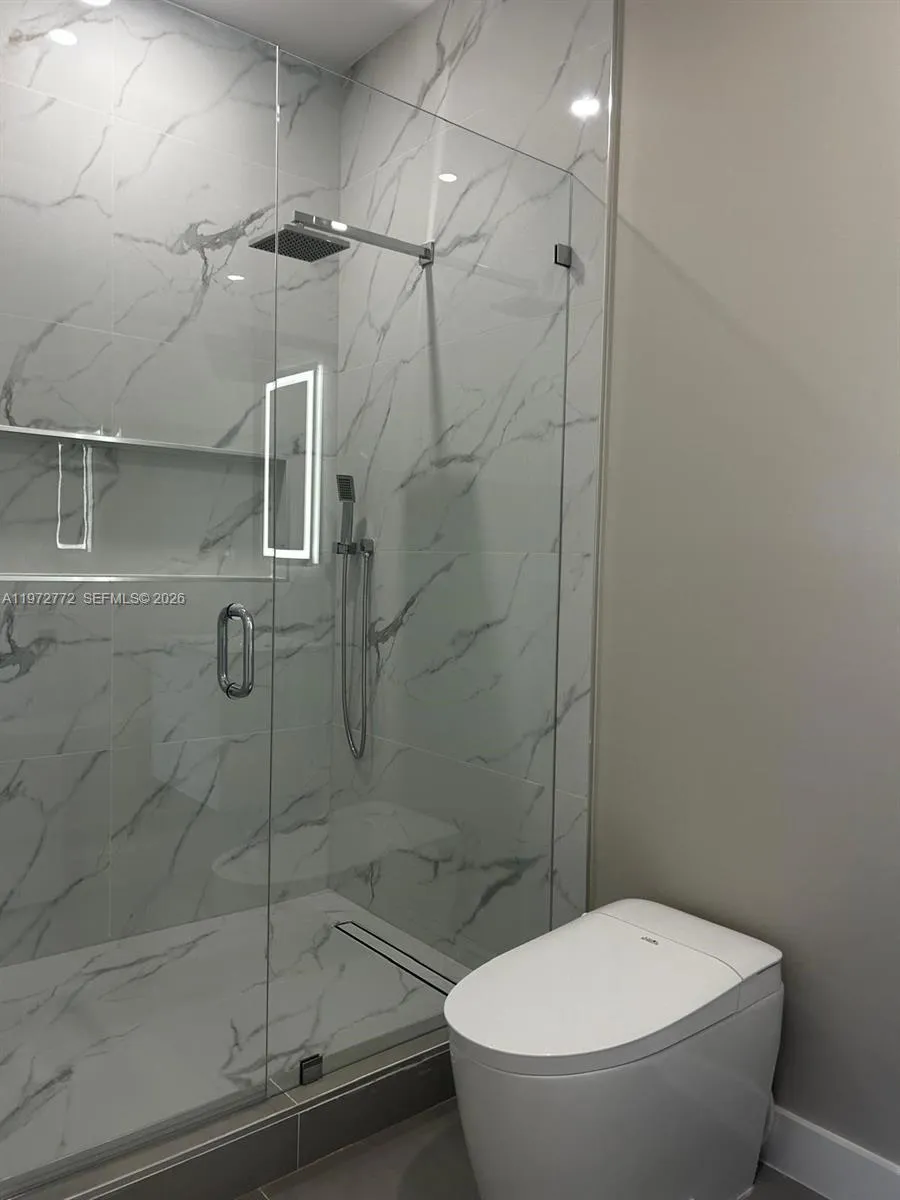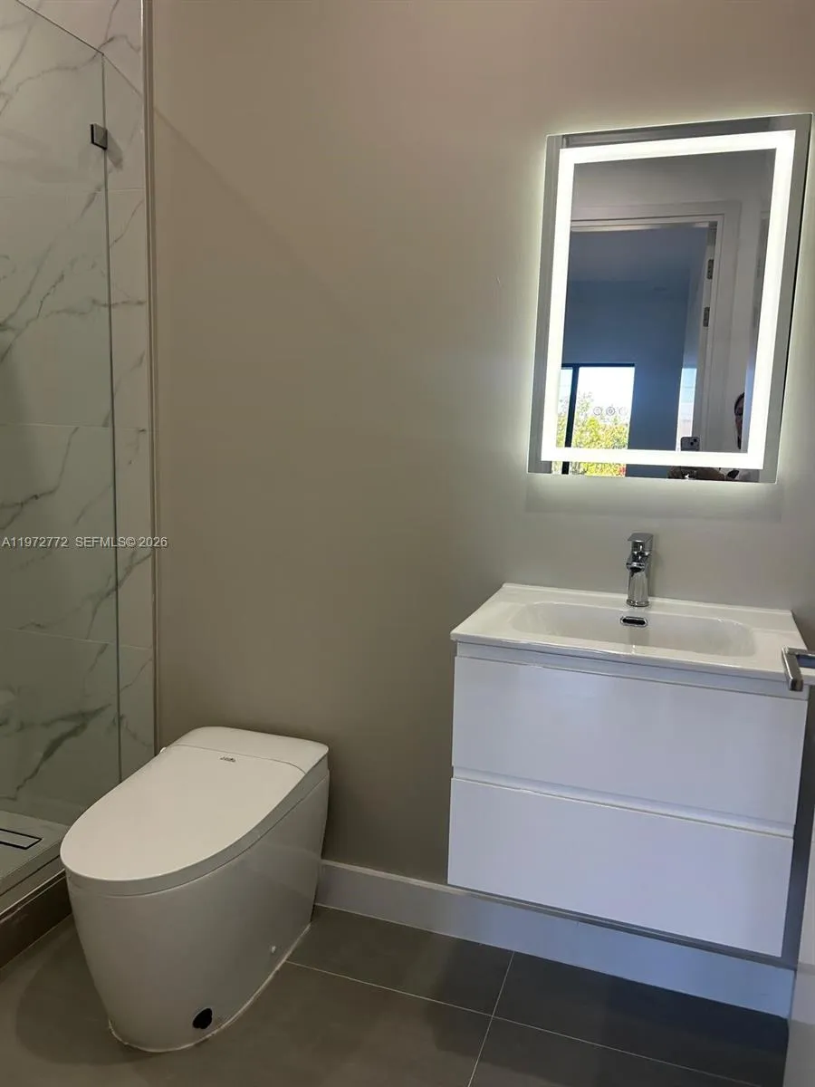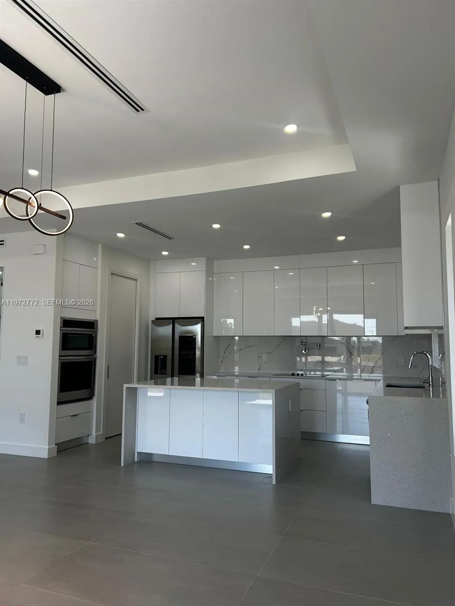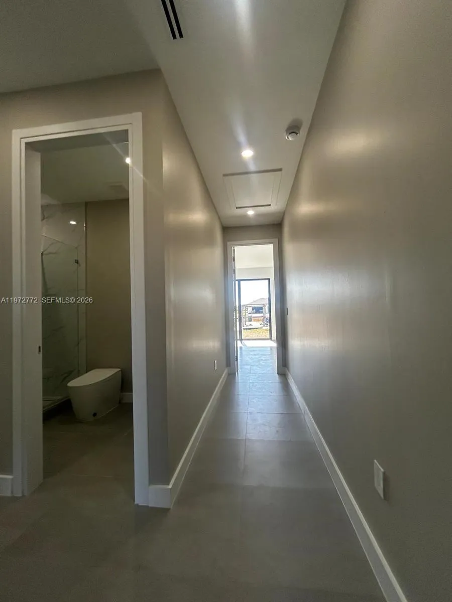 This brand-new modern home offers 3 bedrooms, 3 bathrooms, and approximately 2,930 sq ft of open-concept living space. Featuring soaring ceilings and elegant porcelain flooring throughout, this home delivers both style and functionality. The gourmet kitchen includes soft-close cabinetry, waterfall-edge quartz countertops, full porcelain backsplash, and built-in wine cooler—ideal for entertaining. The primary bathroom offers a spa-like experience with glass-enclosed shower, smart toilet, and contemporary LED lighting. Additional features include hurricane-impact windows and doors, epoxy-coated garage flooring, and hurricane-rated garage doors. This property offers exceptional space, modern finishes, and move-in-ready convenience.